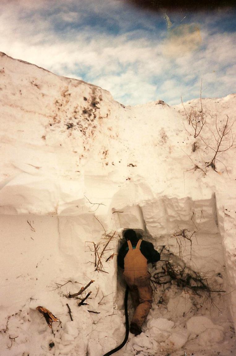 Granny needed her propane tank filled up so she could have some heat. Dad and I spent an afternoon tunneling through this mammoth snowbank to find the propane tank so it could be filled up.