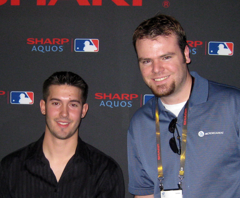 Our booth was positioned very near the Sharp booth at the Convention Center, and Sharp was running a big MLB promo and brought in a handful of players. I managed to see Torii Hunter, Prince Fielder, and Joba Chamberlain, but the line was far too long to get an autograph or picture. But Tigers pitcher Rick Porcello’s line was short, so I stopped over and chatted for a while about Game 163 which he started opposite Scott Baker. Despite me cheering against him, we agreed it was the best game either of us had seen. Former Twins pitcher Doug Corbett stopped by our booth and I struck up a conversation as well.