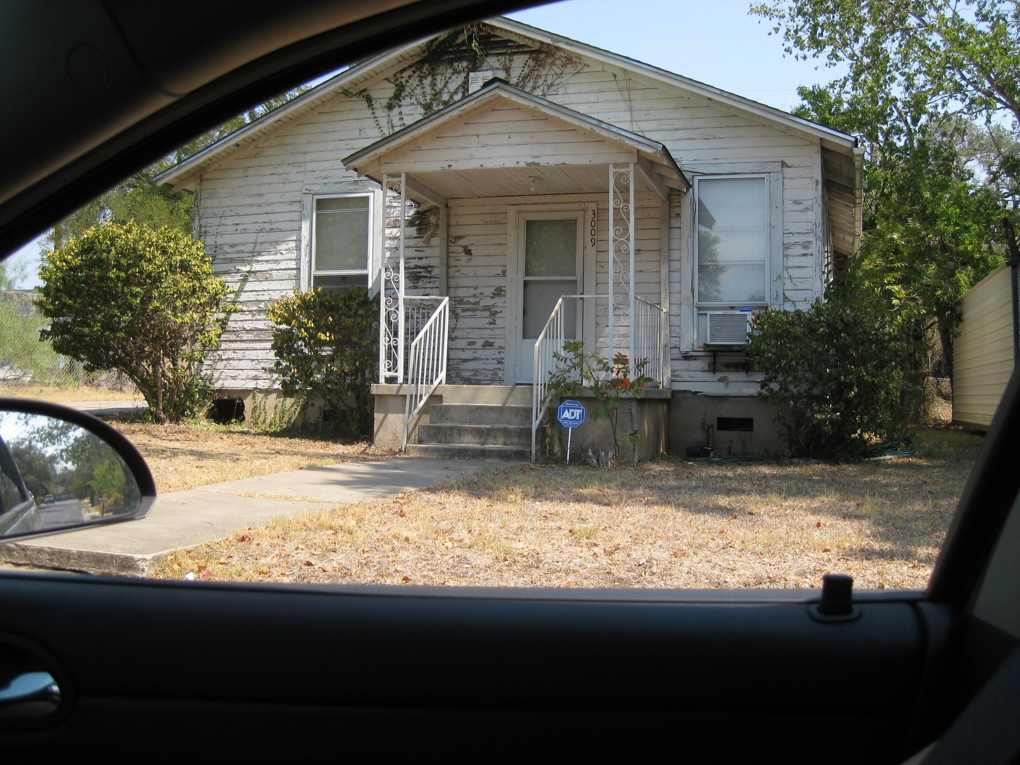 After that, we drove around and viewed various filming locations from Friday Night Lights. I was delighted to learn that Dan was just as big of a fan as me. As I mentioned in a previous post, our Impala AC doesn’t blow out cold air when the temp hits 100, so we drove around down residential streets in the extreme heat with hot air blowing on us in search of seemingly ordinary houses. We arrived at Grandma Saracen’s house and took a couple pictures. Shortly later, we checked out Coach Taylor’s house. Just as we were taking our picture in front of the legendary TV landmark, a girl who lived in that house came outside and saw us. When I asked if we were at the Coach Taylor house, she responded by confirming it was the right house, but she had never seen the show before. Excuse me? If any house I lived in was featured for five seasons on a critically acclaimed TV series, you can bet I’d not only watch the show, but have every episode recorded and ready to show off to all my friends everytime someone came over! Crazy girl! We also visited East Dillon High School and saw the Lions’ practice field. Poor Lauren… she was a good sport and rode along although she has never seen the show.