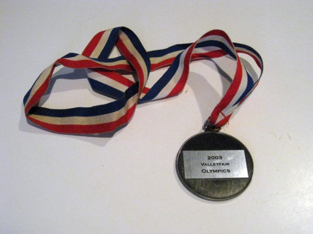 6. 2003 Valleyfair Olympics Silver Medal: What makes it odd that I have this particular medal isn’t that it’s from some old college summer job Olympic games… I mean who wouldn’t keep a prized trophy, ribbon, or medal for an athletic achievement? It’s odd because of the fact that I kept the medal from the year we won second, not the other times when we won first place. Our Games team, typically led by Justin Springer, were always highly competitive and we won first three of the four years I participated. Where are those medals? Who knows. But here’s the year we took runner-up dejectedly.