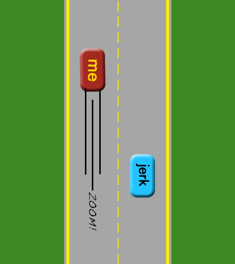 But all too often, the jerk behind me attempts to make a move before I get the chance to. See the crude diagram below for a little visual clarification.
