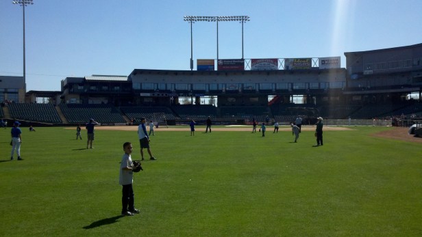 Saturday we went to the Beagle Brigade at the dog park, then stopped off for Torchy’s for brunch. Afterwards I swung on up to Dell Diamond, home of the Triple-A minor-league Round Rock Express, affiliate for the Texas Rangers. At their annual FanFest, I was allowed down on the field to take batting practice and see if I could swat a home run using a wooden bat, batting off of none other than one of Nolan Ryan’s sons (don’t know for sure if it was Reid or Reese). All my pitches seemed to be low and outside, but I made decent contact on a few flies to the outfield after pitifully swinging and foul-tipping the first pitch into the dirt. That night we went out for delicious Indian food at the Clay Pit with the Viviritos, and later visited BB Rover’s Pub where we sampled a few of the 300+ beers available. Always nice when I can get a bottle of Summit EPA just down the street!