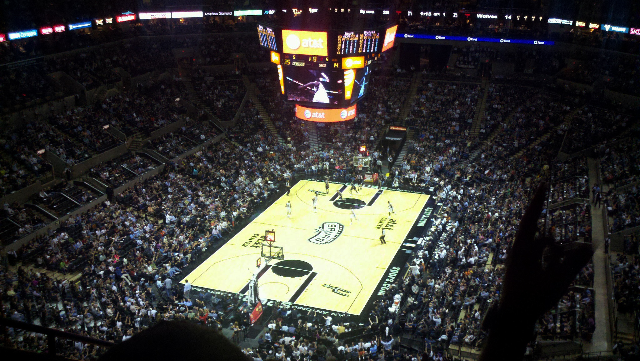 Our awesome seats at the AT&T Center for the Spurs/Wolves game.