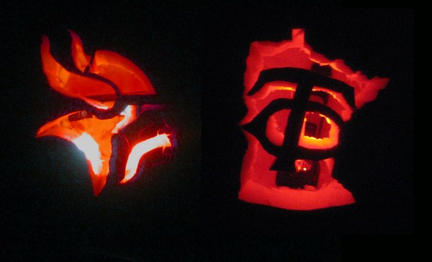 On Sunday I went to play racquetball with Bart at his gym but he overslept and I just worked out instead. Later that afternoon while Lauren took a nap, I carved a couple pumpkins which I’m sure you saw on Facebook. I am especially pleased with the Vikings pumpkin… turned out much better than I could have anticipated.