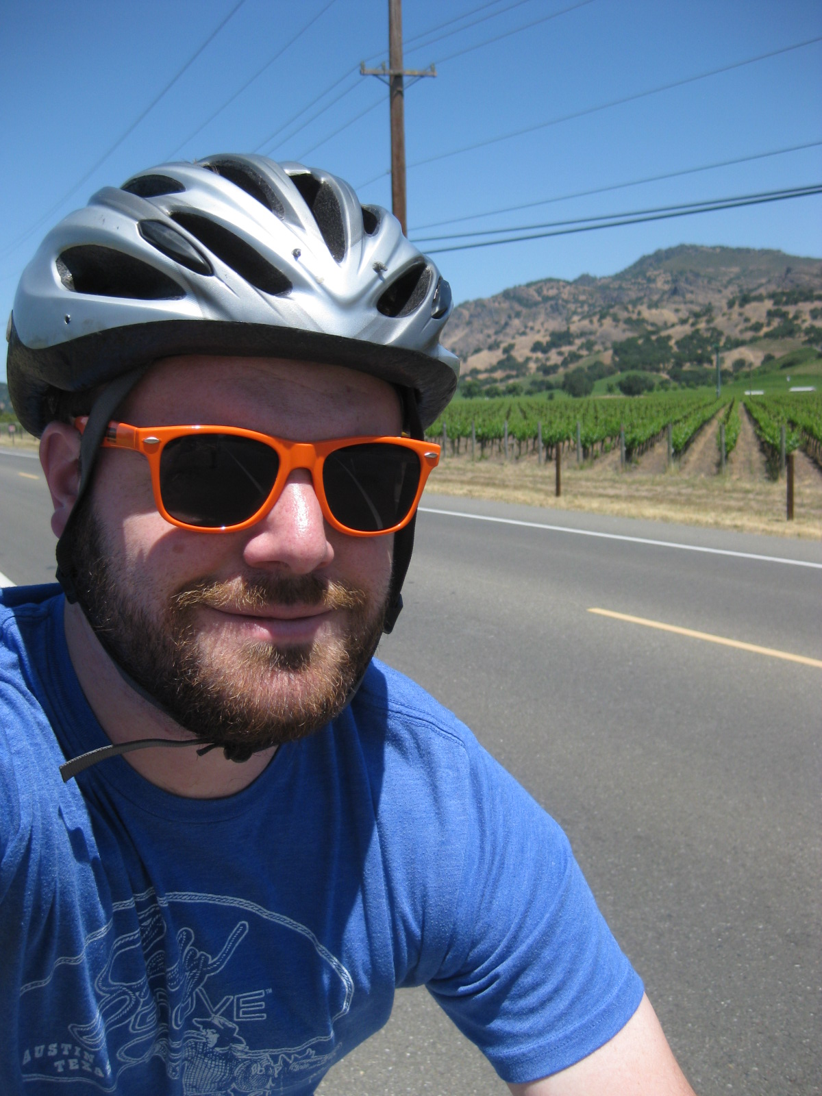 The highlight of our Friday was a 14-mile bike tour of Wine Country. Aside from the two of us, our group also consisted of our guide Amanda, a guide in training, and five others. We rode bikes across the area to three wineries, stopping off for tastings and little history lessons and lunch. You might picture us riding our bikes down little country gravel roads, but truth be told we were on the shoulder of fairly major roads with cars zooming by mere feet away. It was a perfect day for it though–sunny, 70s, slight breeze. The wine tastings were fun and the biking was fun but damn did my butt get sore riding around on that bike seat for seven hours. I had to pretty much stand and bike the last two miles. Anytime someone wanted to buy wine, we would leave it behind and the bike tour company would send a van to pick it up.