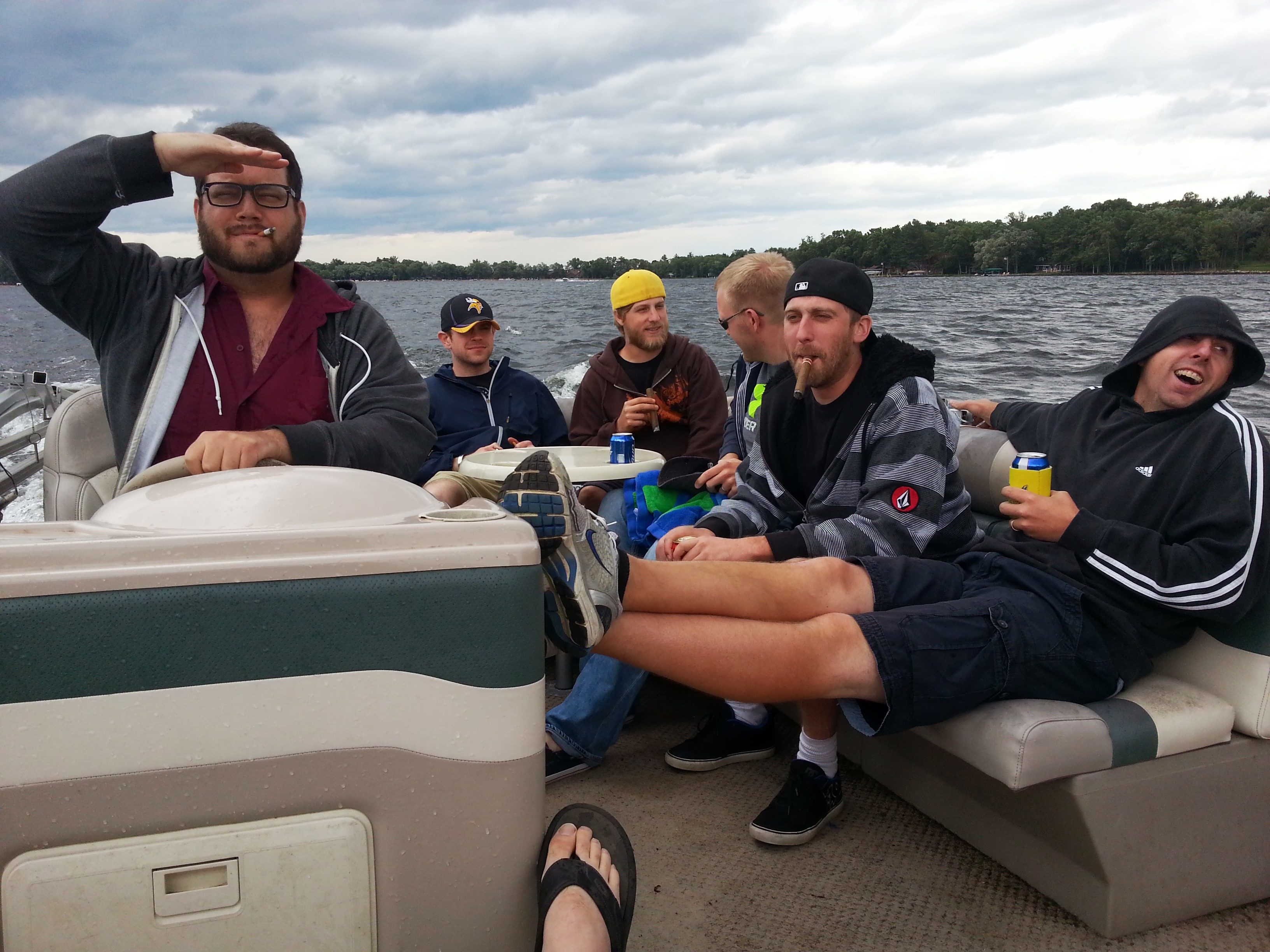 I rode up north to a resort near Nisswa, also not far from Brainerd, with Nick Sandbulte and Walsh’s co-worker Tony T’Kach. When we stopped at the liquor store in Baxter it was actually cold, windy, and rainy. Like 55 degrees. I sure can pick good weekends for northern travel! Meeting us at the cabin were friends Luke Katuin and Casey Dahl, along with Walsh’s college friends Erik, Tim, and Travis, bringing the total attendee count to 11.