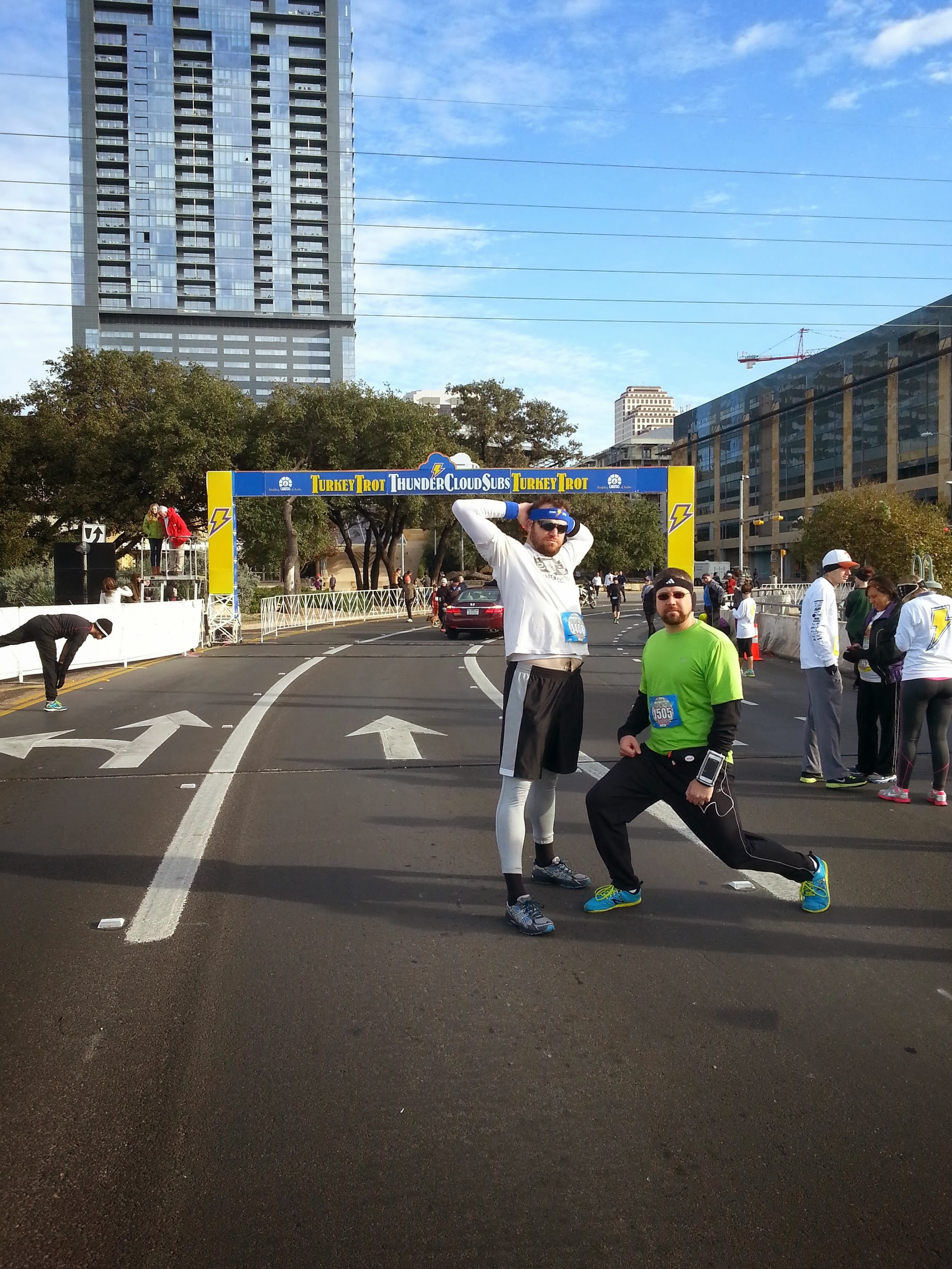 Thanksgiving 2013 began with me trekking to downtown Austin to participate in the annual Turkey Trot 5-Mile Run with friends Ryan and Heather Bart, and Nick Manson. I did three 5Ks in 2012, but this would be my first 5-mile run. I pretty much winged it and didn’t bother spending much time getting into shape leading up to the event, unlike my friend Bart who spent two months running like a madman to get into shape! Gotta give Bart credit, he was one motivated guy and he went from hating the idea of running to doing 4 miles like nothing, truly an inspiration to us all. Anyway, I was among 23,000 participants who took off at 9:30am from the Congress Ave. bridge.