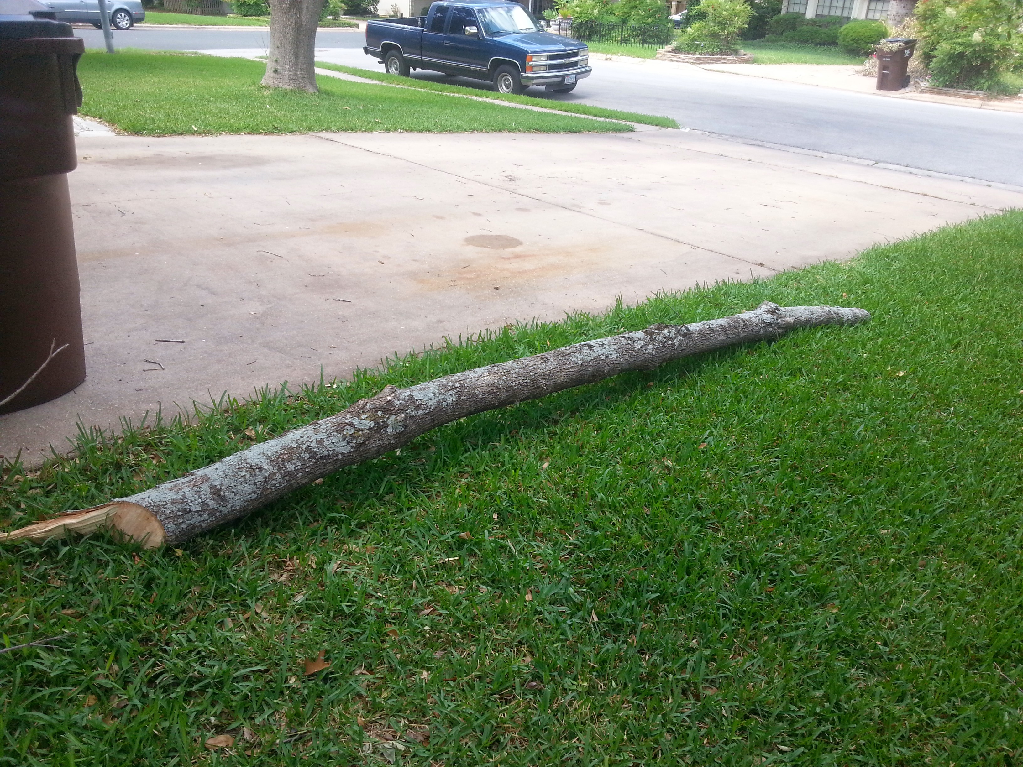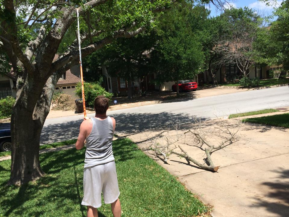 The big tree in our front yard is nearly dead. Last year I was none the wiser and hired some company to come out and remove a few dead limbs for the hefty sum of $400. This year, noticing a few more dead limbs that are quite the eyesore with no leaves, I invested in a tree trimming saw with expandable handle for $40 and decided to do the job myself.