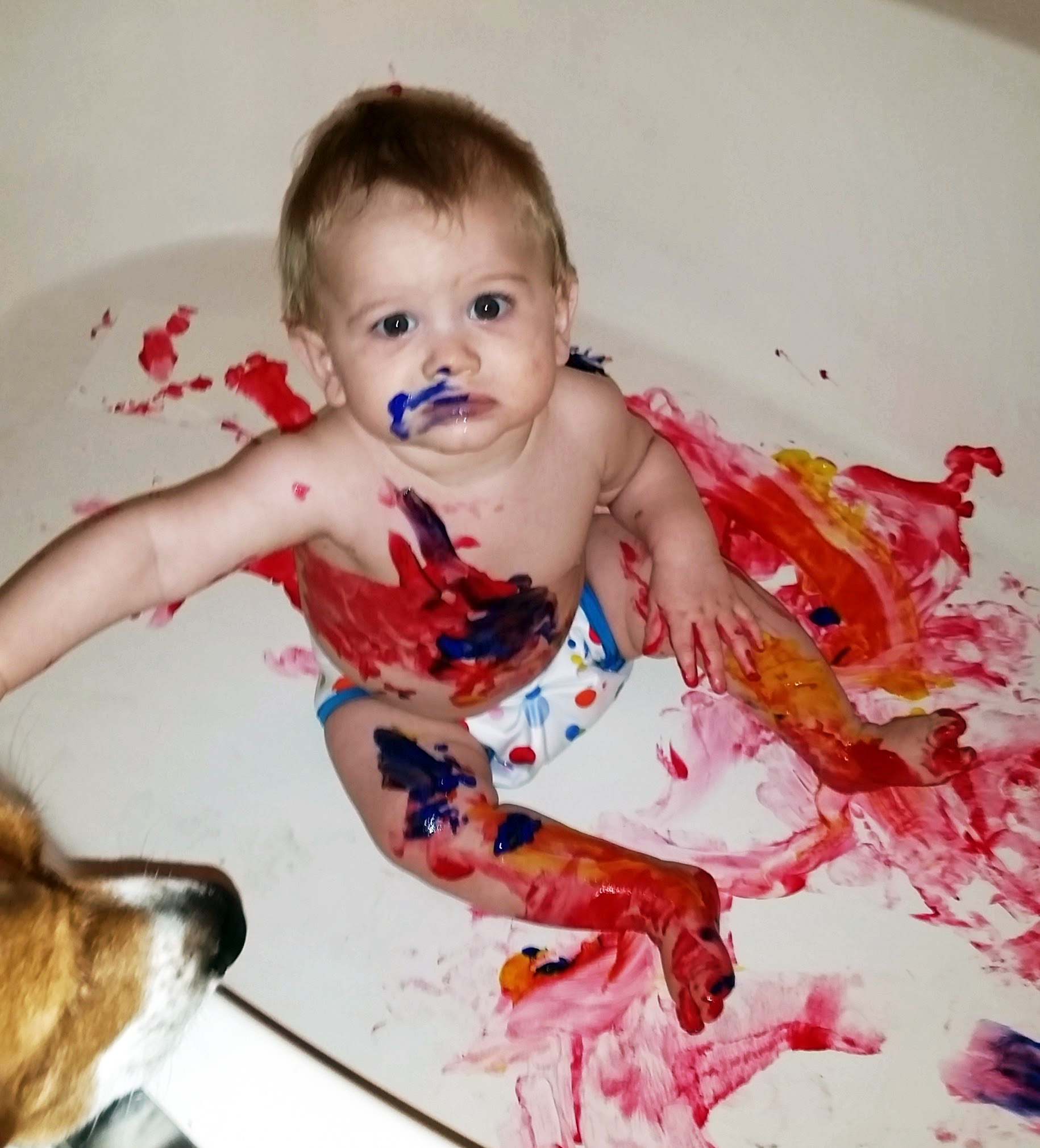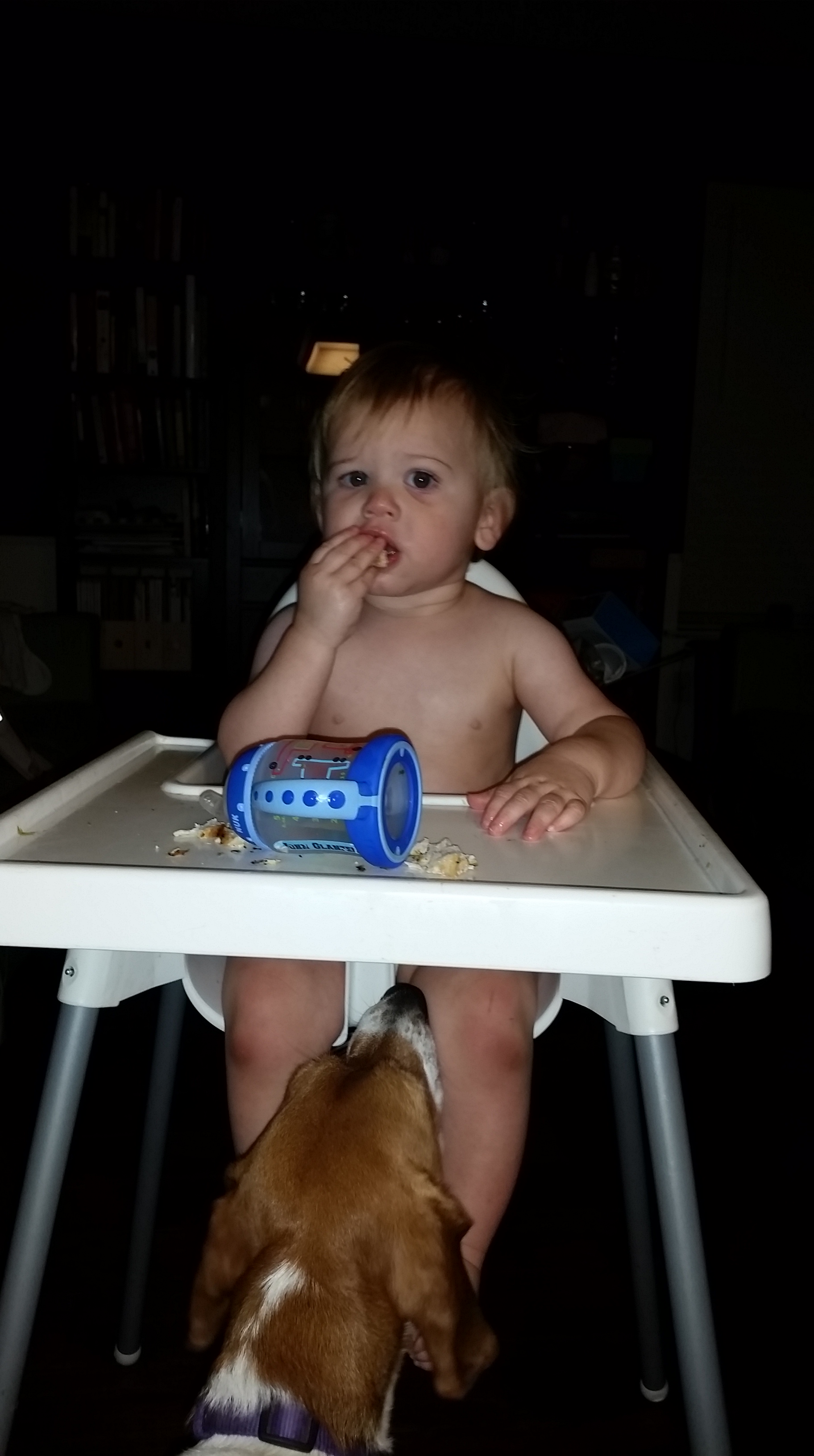 It’s too bad this bout with diarrhea had to hit this week, but there are worse things. I was forced to stay home with him both Tuesday and Wednesday because daycare sent him away until he was recovered. I took him to the doctor Wednesday and Doc Howard said it was nothing to worry about and to just temporarily change up his diet. In the mean time, we got to spend some quality time together in the house, not to venture far away in case of poopsplosion. We pretty much ate lots of snacks, rolled balls back and forth, read his most favorite book Noisy Farm (gift from Alex and Ann family) several times, napped, and walked the dog on repeat for two days.