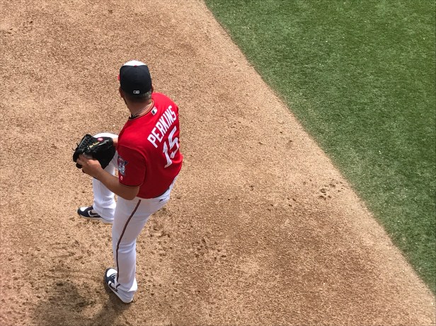 Sunday it was already time to check out, but not before a second spring training game. This time it lived up to the hype, with great first-row bar-top seats right behind the Twins bullpen. Lots of space to move around, built-in table, up-close access to the Twins bullpen, and for a while anyway, a competitive game with the well-known major league regulars for both teams. I forgot to apply sunscreen to my face and got BURNED viciously.
