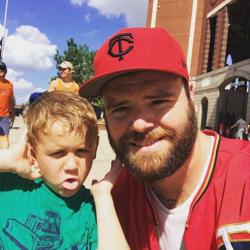 Lost in the shuffle of this wild September was last weekend’s impromptu father-son trip up to the Dallas-Forth Worth area. Over the three-day Labor Day weekend, we had very few plans. We hung around the house on Saturday, and when I woke up Sunday morning it was more of the same. As I browsed the interwebs on my laptop around 9am, I remembered the Twins were up in Arlington to play the Rangers at 2pm. Realizing this was two very bad teams playing each other, I checked on tickets and was astonished to see third row tickets behind the Twins dugout going for $15. I mentioned to Lauren, “fuck, if we leave right now we could easily get to the Twins game in time.” Lauren said no thanks, but insisted I go and take Johnny, probably so she could have some sweet R&R around the house before baby girl arrives. So, I threw a handful of crap in a backpack, gassed up the van, and off we went!