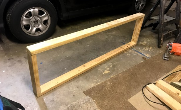 I broke out the trusty power sander and smoothed everything all out. The little curves in the footer of the stand were mostly just sanded down after some pretty jagged cuts with the circular saw.
