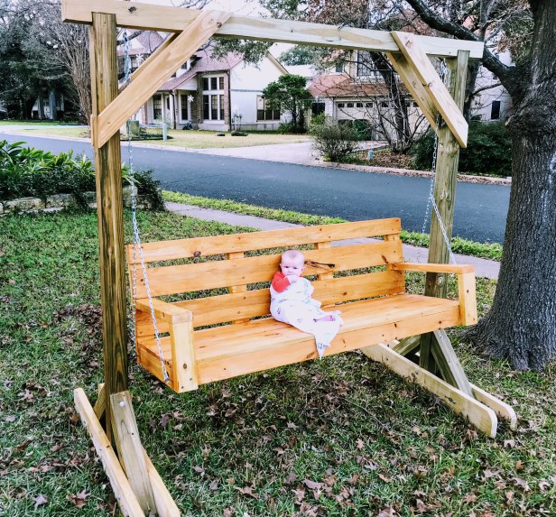 I found some plans online for a swing and a stand. I followed the plans exactly except I made the swing a little wider. Building the swing required use of the Kreg Jig, a highly valuable tool.