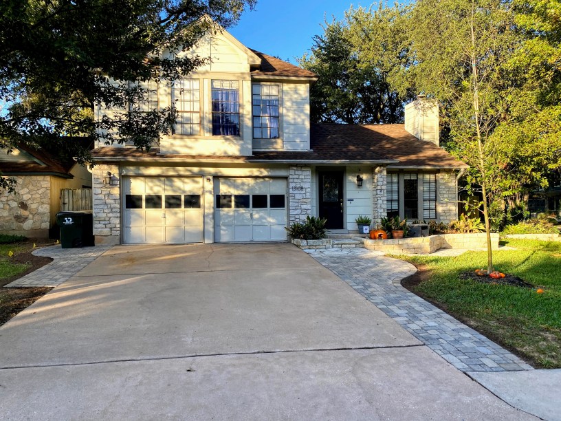 The big news, if you can even call it that, is the new walkway we had installed on both sides of the driveway. I thought our yard was in dire need of some sprucing up and decided to put down some nice pavers so we’d stop smushing the lawn. Once I realized the amount of work that went into it, I called in the pros and shelled out the money to have the job done right. Afterwards, I hired our neighbor to pressure wash the entire driveway, sidewalk and curb (a tough job as we’re on a corner lot). The results were pretty good!