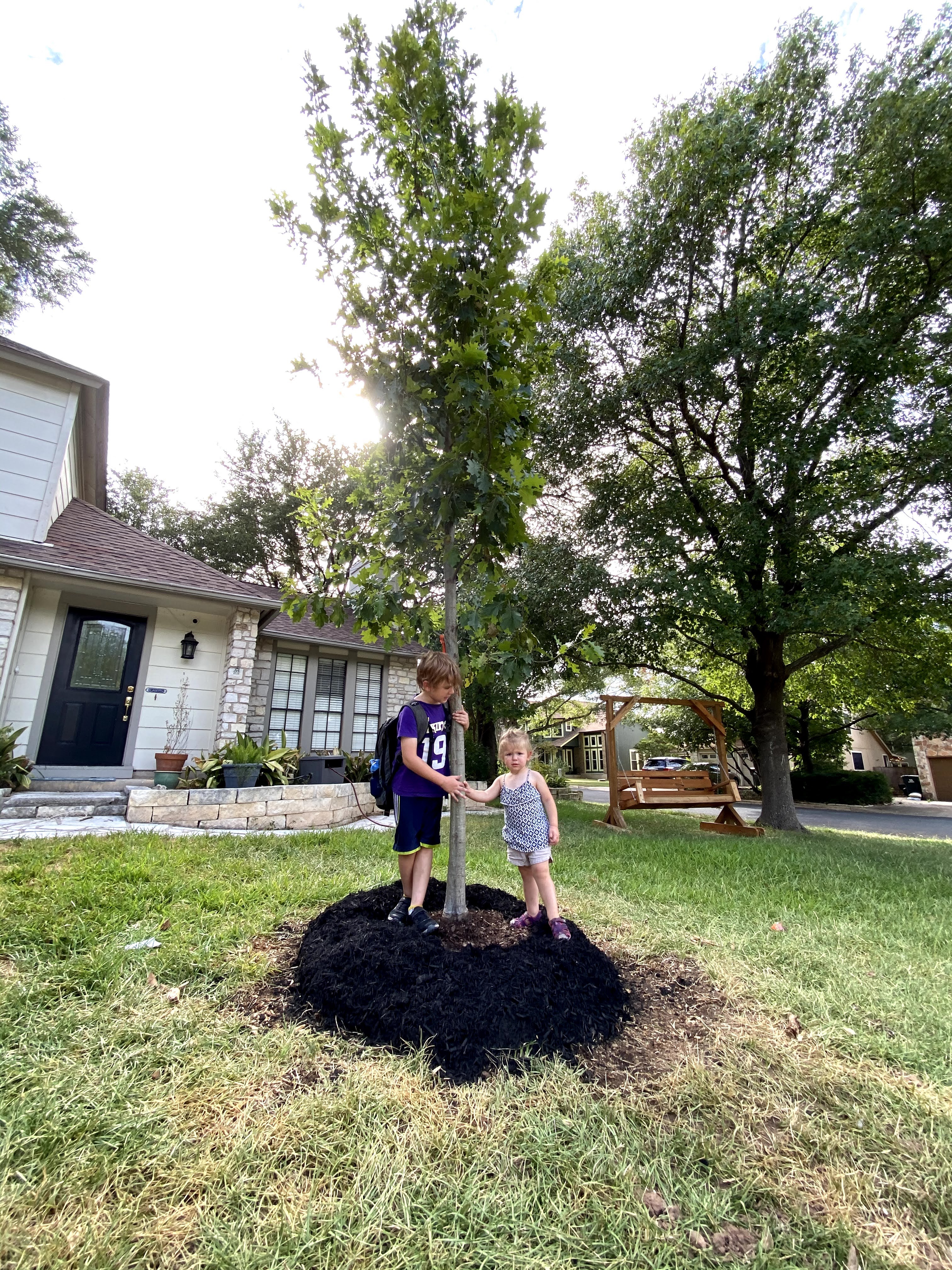 July – Finally, something fun! On the 1st, we risked it all and boarded a plane to South Dakota, where we would enjoy a week on the Glanzer family farm, isolated from all of the pandemic nonsense. It was just what we needed at that time—an escape from the confinement of the city. We went for big walks, checked cows, swam, watched fireworks, boated, enjoyed big meals, and capped it off with a trip to Storybook Land in Aberdeen. Our trip to the farm was a great success and we returned to Austin on the 9th. By this point, John had returned to his old preschool at Four Seasons for summer daycare. We had the house to ourselves once more and could start getting some work done. On the 15th, we purchased a trampoline which definitely helped kill a lot of time. On the 19th, I scored big when I got 50 boxes of free baseball cards to sort through. And baseball returned to the airwaves in front of empty stadiums on July 23. On the 30th, our new tree was planted in the front yard, which I would wind up badly overwatering to overcompensate for the daily 100s. Life was starting to show some signs of normalcy once more, and COVID cases were flattening a little.