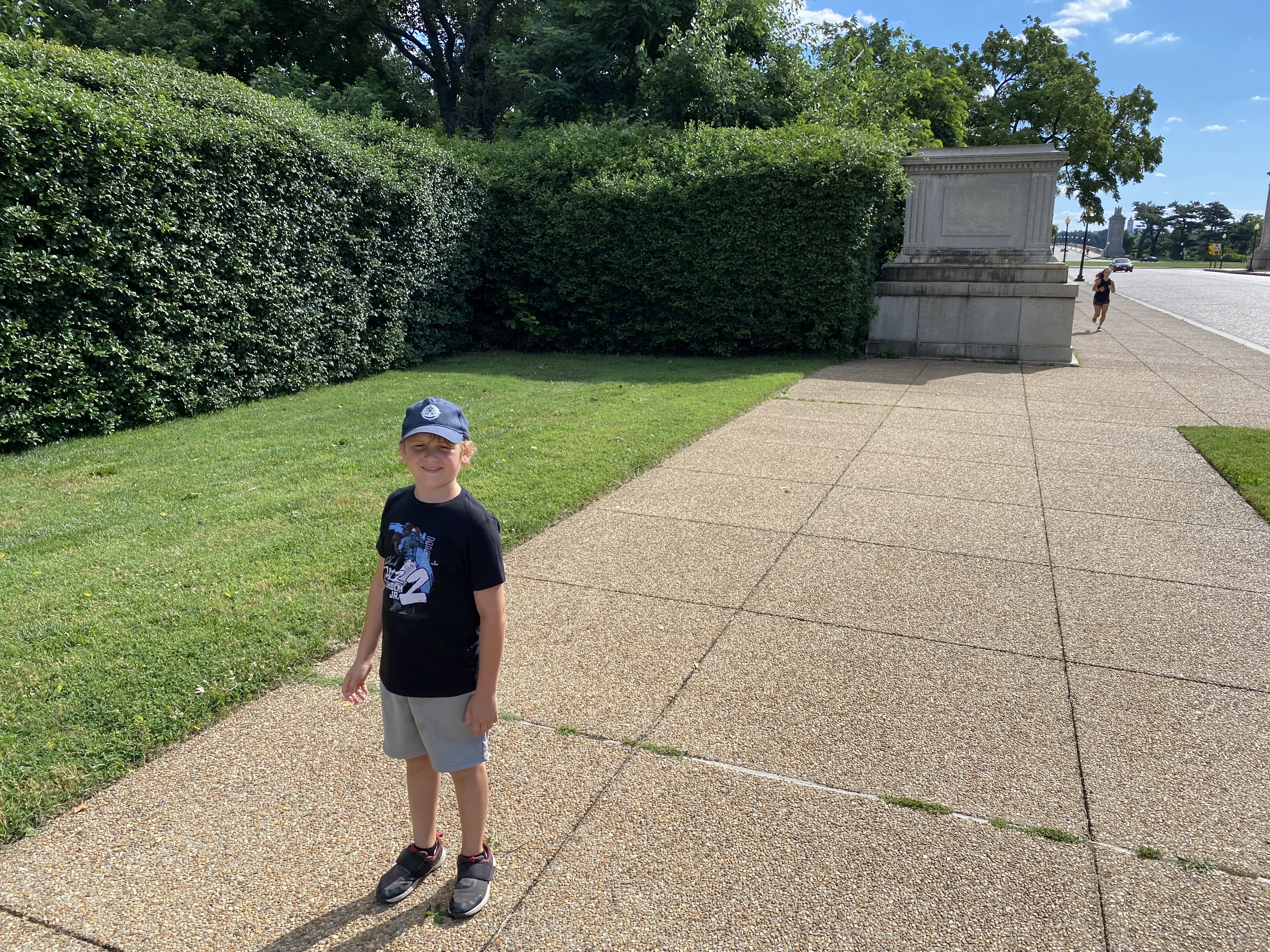 Our morning started with me realizing my phone hadn’t been charging overnight and was at only 40%, not great considering how reliant I needed to be on it to get us around. But I looked at it perhaps as an opportunity to instead put it on airplane mode when unneeded and be more present. After free hotel breakfast, it was a short Uber ride over to the Lincoln Memorial. My plan was to walk across the Potomac on a pedestrian bridge to the Arlington Cemetery so John could say he’d been to Virginia, then walk back and do all the stuff on the Mall, but it quickly became clear that would never work. John got so exhausted walking the half-mile over the bridge, he crumpled to the ground in utter despair. He does this thing that’s real but also feels so over the top where he literally drops to his knees, mouth agape, and falls to the ground with his hands over his head and cries when the mere idea of walking any distance is discussed. I know he’s only 7, but his total lack of stamina is really concerning. We made it to Virginia and got a quick pic to prove it, then John’s “reward” for walking was to get an Uber to the Smithsonian Zoo and save all my boring stuff for later. Zoos are something the kids can only do with me, as Lauren refuses to go into them due to unethical treatment of animals, so it was probably now or never.