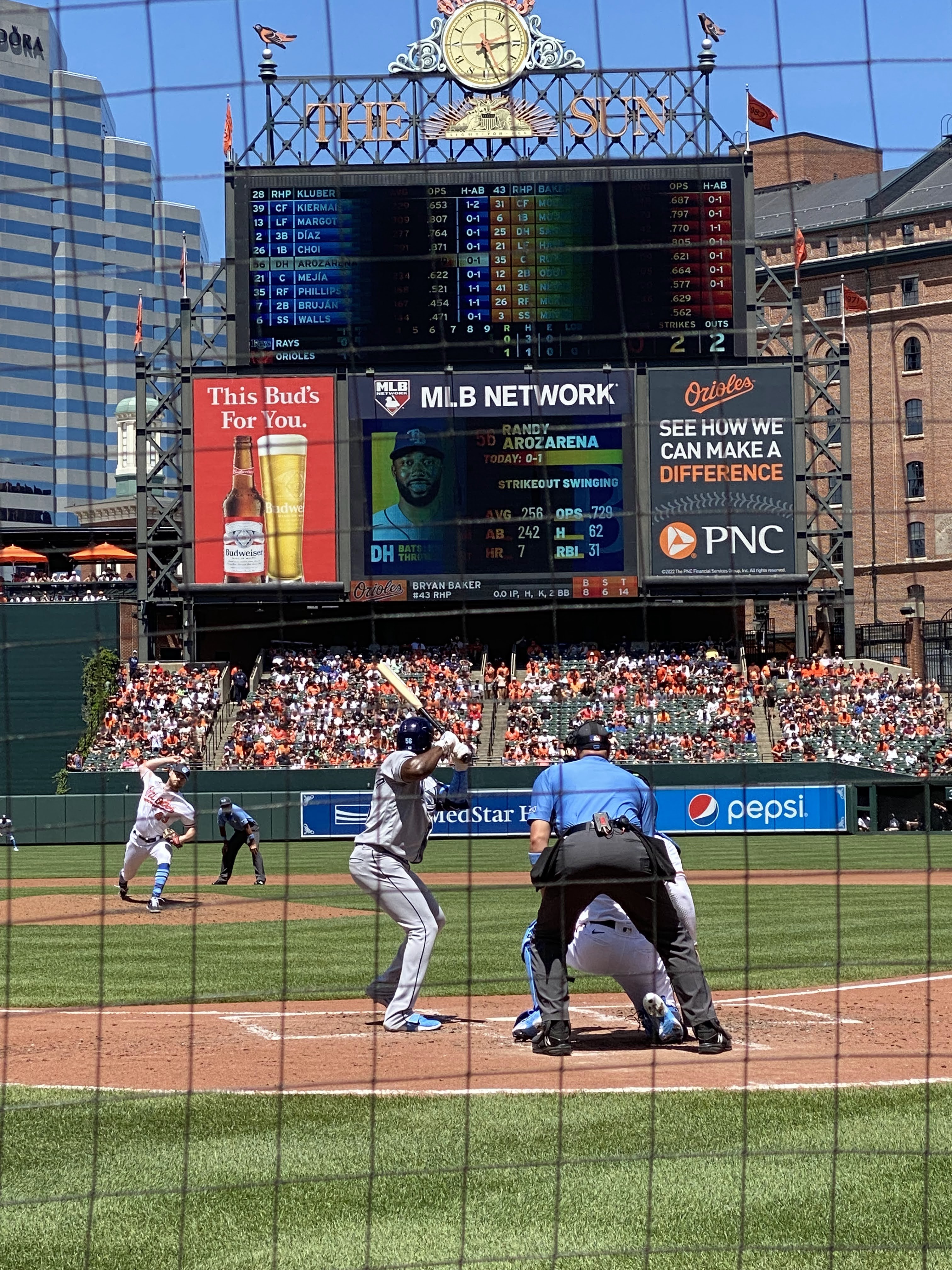 There was a festive pregame atmosphere near the ballpark, with a few historic old bars right by our hotel opening their patios to the masses. We sat down and had lunch and a few drinks, waiting for the gates to open. Again, just surprisingly friendly servers and top notch service from absolutely everyone. I had 3 pregame beers, stepping it up from my relatively stark lack of alcohol on the trip to that point, what with the ER visit and all. Be sure to visit Pickle’s and Sugarmore if you’re ever going to an Orioles game!
