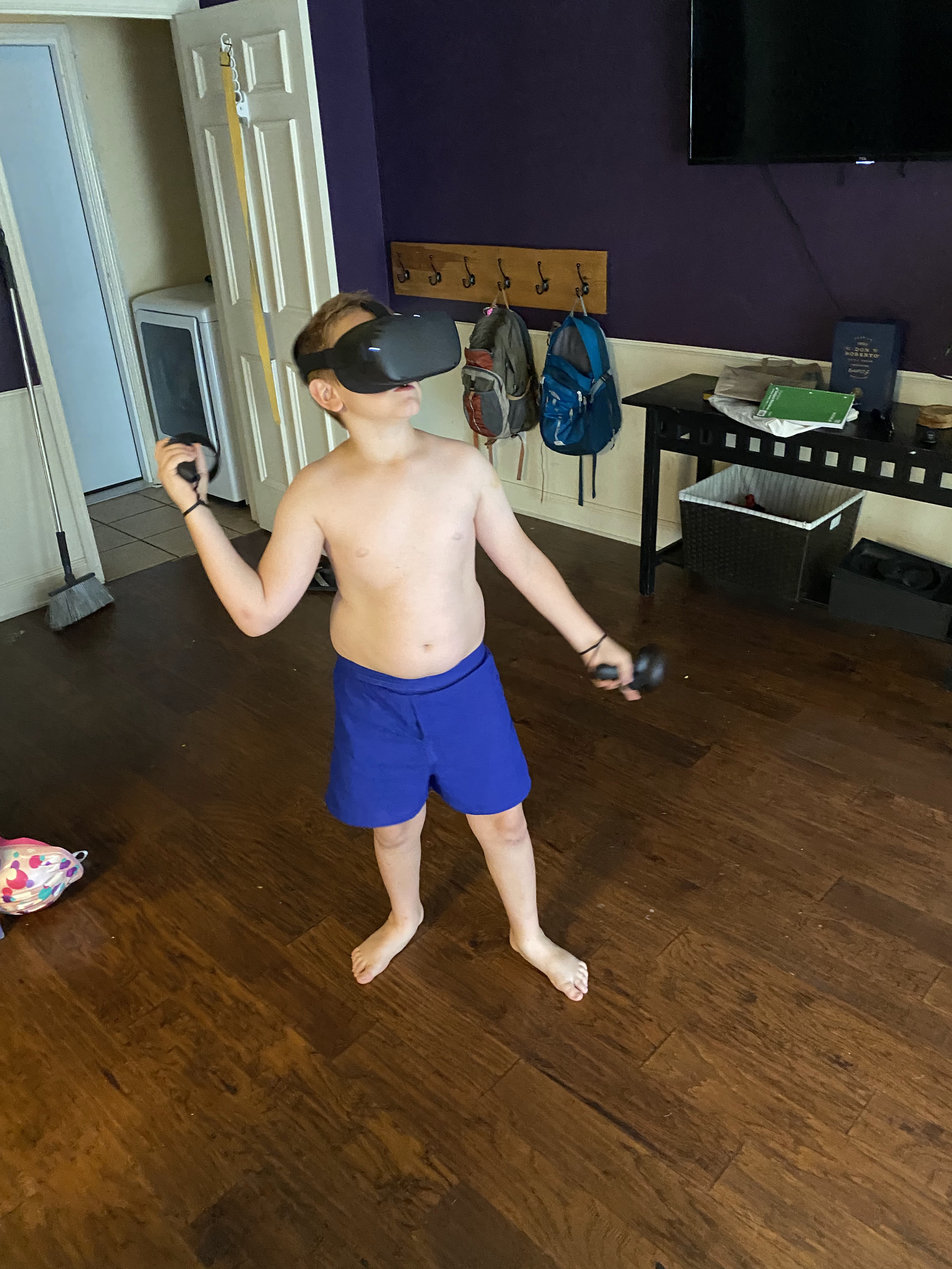 One of John’s birthday presents was a used Oculus Quest that I purchased from old buddy Bart. I had never used any sort of VR video game before, so it was all new to me too. We loaded it up with a few games and man, I was floored. The first week of playing, I really felt like I was actually there in the games. I was playing a boxing game that was literally too real and it scared me. I had to throw off the headset once or twice as a boxer was about to pummel me in a ring in front of thousands. After a couple weeks the realness of it has worn off, but it’s still very fun and a good workout. Thanks to the grandparents, uncles, aunts, cousins and others for your birthday gifts also. We may not have acknowledged them but John is very grateful.