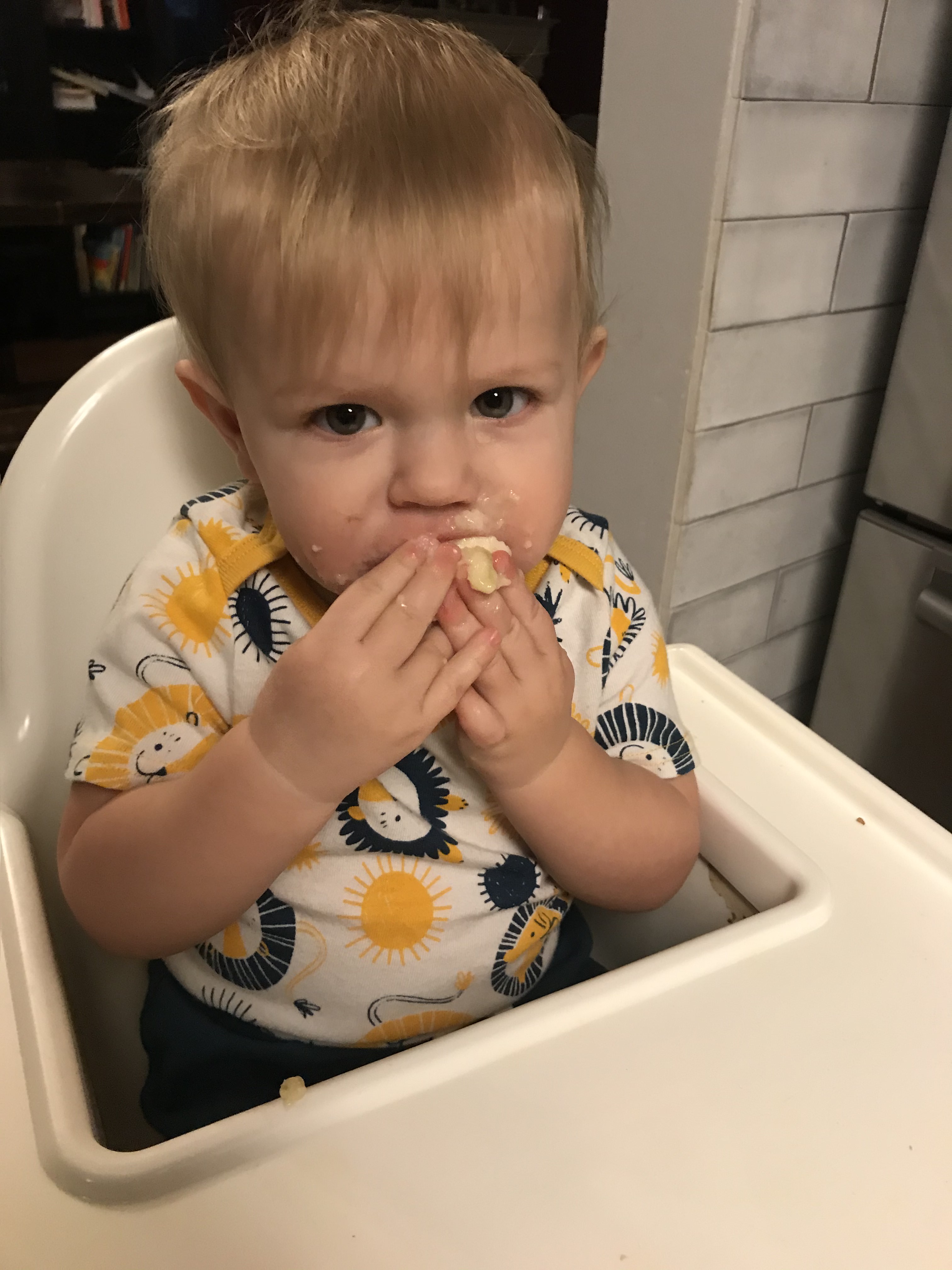 In 2020, Edie was all grown up and climbing across a hot stove.
