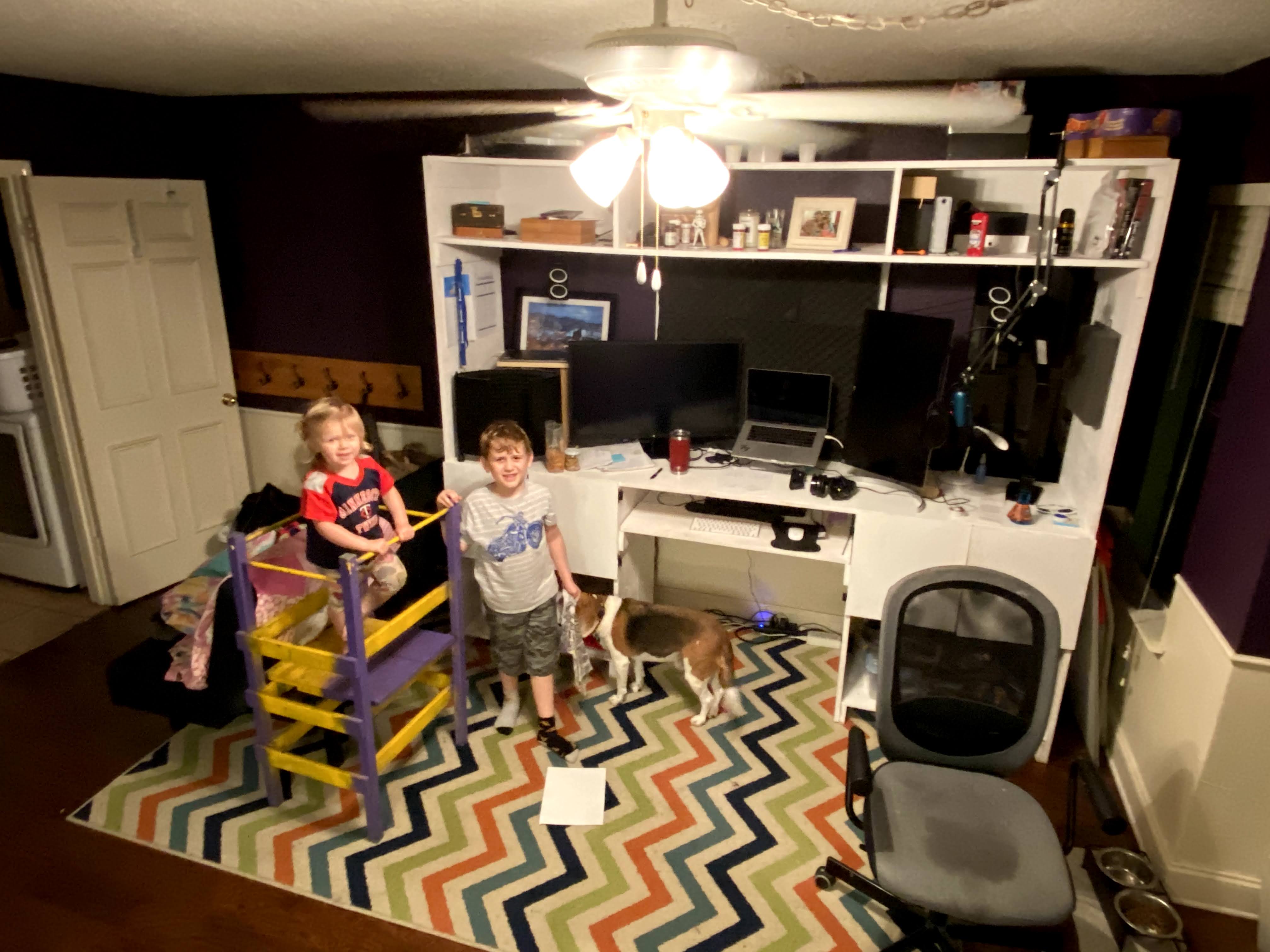 In 2019 the kids played near my old homemade desk. The last remnants of that desk were just hauled away in the trash this weekend.