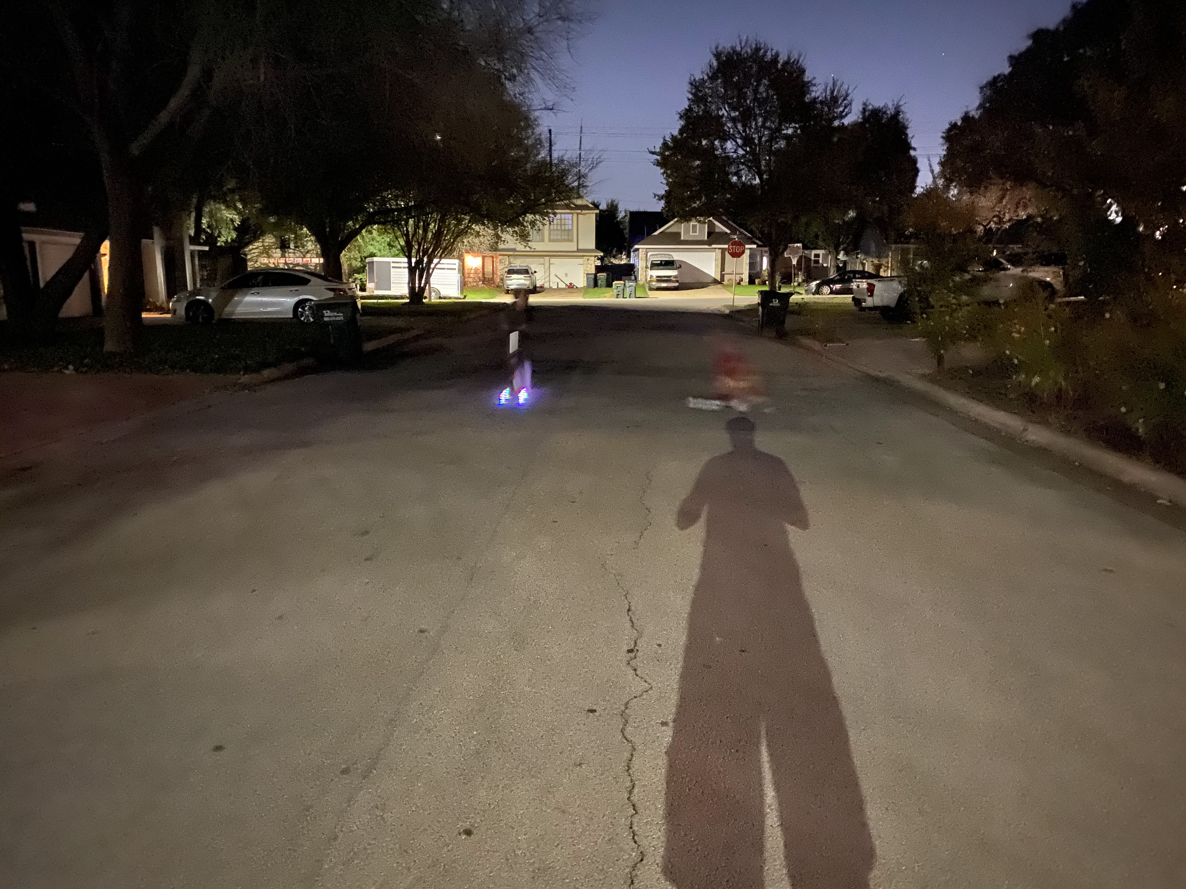 November 14, 2021 looks like it was spent zooming up and down Sinton Ln on John’s light-up scooter.