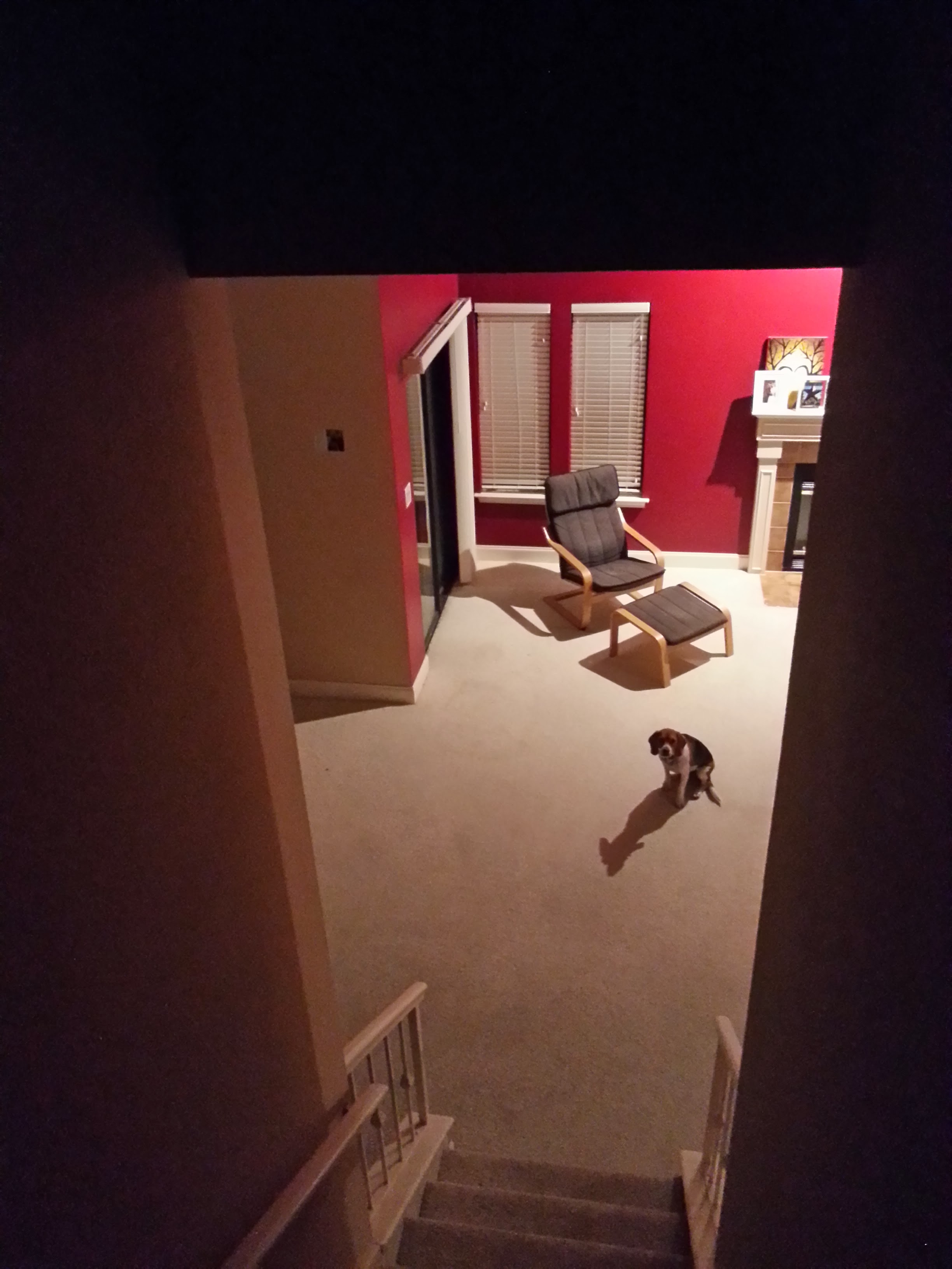 On this date in 2013, Baxter was spotted at the bottom of the staircase at night.