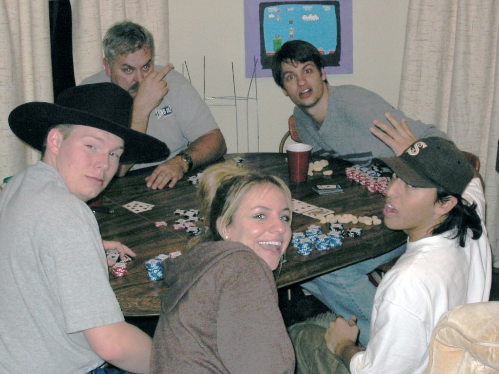 In 2004, we welcomed Terry LaPlant to DSU for the weekend up from Nebraska and played a little poker at the house. Quite a crew here with Terry, Chris Ahrendt, Matt Hanson, Kayla who had driven over from Minneapolis, and Nick who was wearing a cowboy hat.