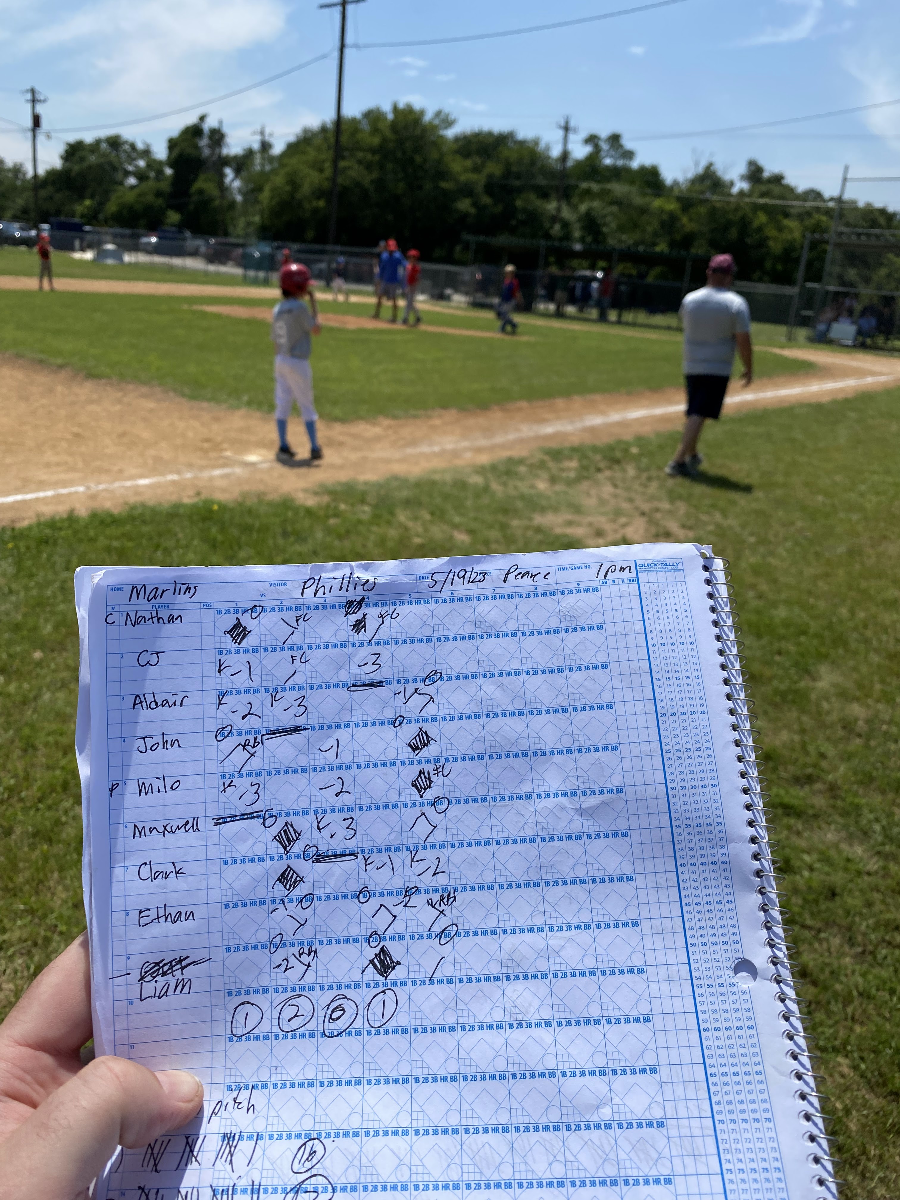 In Game 3 vs the Braves, we were trailing 7-6 after 3 innings. The rule says a new inning shall not start after 1 hour, 30 minutes. But there was still a minute left on the clock, so I sent the team back on the field and forced the two teams to play another inning, where we rallied for 5 runs and a victory. That was thought to be a little iffy on my part as the Braves were already lining up to shake hands. But to add to the drama, we had two players have to leave that inning due to soccer. So we simply skipped their spots in the lineup as directed by the umpire, allowing our best hitter to bat a second time that inning. It didn’t wind up affecting the outcome, but needless to say, Braves parents weren’t too happy about it. After a long discussion with the league powers that be, we were allowed to claim the win.