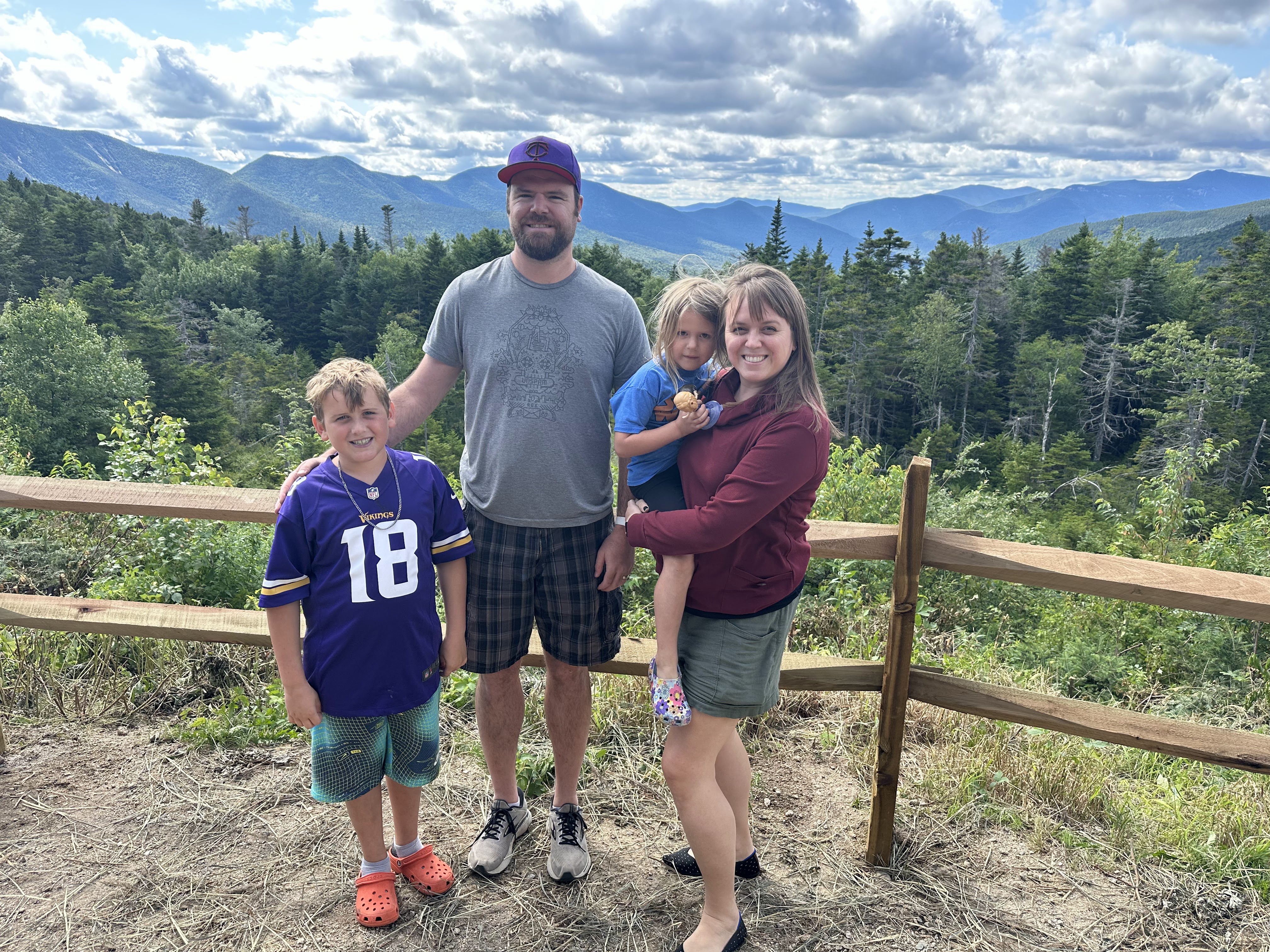 We stopped off again in Concord at the state capitol to take a few pictures and say we were there. We were well into the mountains shortly after, passing through some breathtaking sights as we got off the interstate and onto some windy backroads up towards the town of Bartlett. We soon arrived at our friends’ cabin and got the grand tour. It was very impressive! Our kids and their two boys all got reacquainted and headed upstairs to start playing video games. That night we were treated a great grilled meal and a beautiful cool night under the stars. The idea that we needed blankets was enough to put a smile on my face, such a far departure from the record-breaking summer we had been experiencing.