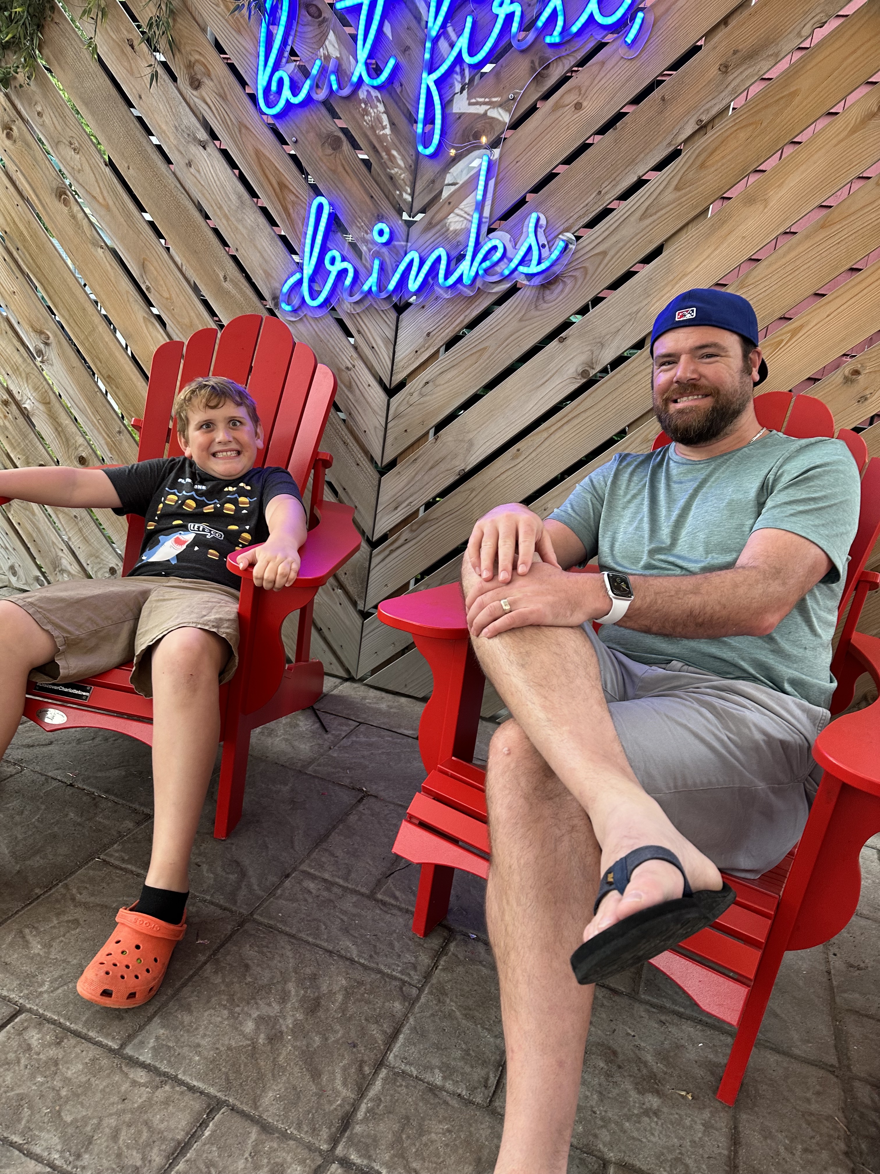 In the afternoon we embarked north into, well, pretty much nowhere. I was surprised how little civilization we encountered after Bar Harbor. We were forced to stop at a very rural mom & pop convenience store to use an outhouse! By mid-afternoon we had reached Calais, Maine, the last town in the US, and had lunch at Riverview Restaurant. It was then time to cross into Canada! The kids had never left the US before. We had tried to get them passports in Austin for months with no luck, but on 2022’s visit to South Dakota we were able to easily get passports in Huron at the post office! Consider that route if you’re having trouble finding passport appointment availability in your city. So, we finally put our passports to use and crossed without delay into New Brunswick, the third Canadian province I had visited after Manitoba and Ontario years earlier. It also came as a surprise when we crossed the border that we were now in a new time zone: Atlantic Time! In all of my research, I completely forgot about the time zone to the east of the US. So, we lost an hour there. We soon arrived in the city of Saint John, which appeared to typically spell out the “Saint” in its name rather than abbreviate. We checked into our Hilton and began exploring. We think we went the wrong way, because all we saw that evening was a city shut down and drug deals going down in the city parks. We found a pub for dinner and ate on the patio in front of mass waterfront construction. Our first impressions of Saint John weren’t exactly stellar. Thursday morning, however, that all changed. I woke up early and got in a long jog along the boardwalk and determined there was in fact a nicer area of town. That morning after checking out of the hotel, we explored the famous Reversing Falls, a natural phenomena that basically sees water flow at different directions at the same time, creating a dangerous whirlpool effect. It was interesting, but not something you could spend more than five minutes looking at. We visited Walastoq Park with its dozens of giant wooden carvings of famous residents, and a couple other areas of interest including the steep inclines of downtown and some famous architecture. For lunch, we came upon the Container shopping district, a fun and modern center filled with food, drinks, music, and plenty of shops. We enjoyed a beer and lobster roll while the kids played bean bags. We never did make it out to Hopewell Rocks, however, said to be the biggest Saint John-area attraction, despite Edie buying a souvenir cap bearing its name. But we left with a favorable impression of the city for having spent only about 19 hours there.