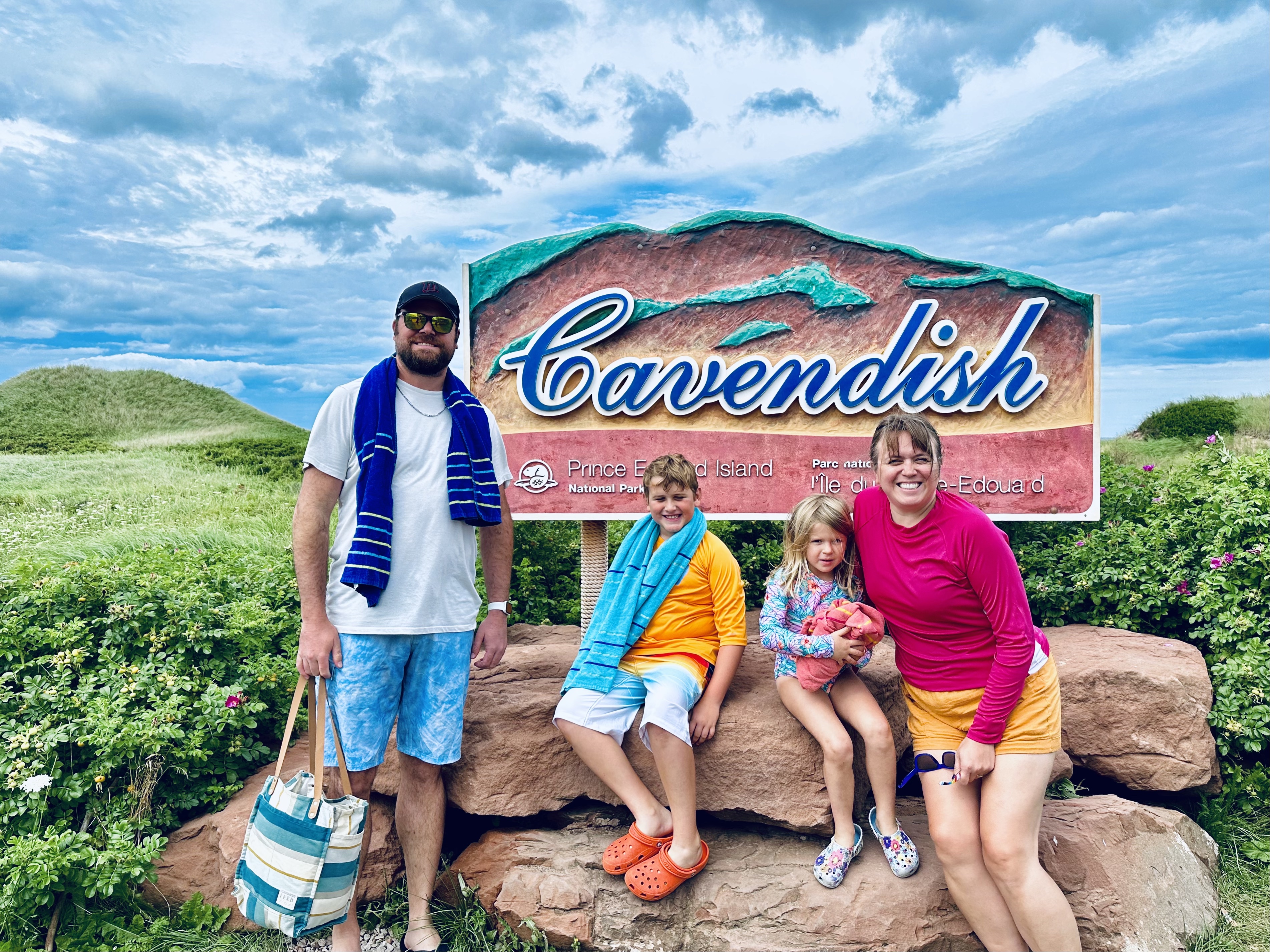 The next morning I awoke to the sight of a giant cruise ship docked on the water. We wandered around the harbor area and discovered the city probably lives off of these cruise stops, flooded with tourists crowding all the shops and restaurants. To be honest, we didn’t really encounter a whole lot else to do or see in town. The kids stopped and watched a children’s play of some sort that attracted a crowd, but otherwise they were very cranky to be forced into walking another harbor. We decided to do a beach day instead, and headed to the far north side of PEI to Cavendish Beach, right along the Gulf of St. Lawrence. How many kids can say they swam in both the Gulf of St. Lawrence and the Gulf of Mexico over summer break! In driving from the south coast to the north coast of PEI, it took roughly 40 minutes! Yeah Prince Edward Island truly is the Rhode Island of Canada. It was barely 70º, but the beach was full. It was really a pretty neat area with big rolling dunes along a nice sandy beach. John immediately got out in the choppy, frigid water and was having a blast diving through the waves. The rest of us couldn’t believe John got out there on foot, with ten feet of jagged rocks lining the shore! I tiptoed through the rocks and then it turned to sand. It turned out John had just found a particularly un-rocky entry to out into the water. I eventually brought Edie into the water with me, and the three of us swam around for a long time with many other beachgoers while Lauren read on the beach. It was a fun time, but also funny to think that this was considered beach weather in northern PEI while back in Texas it would have been considered far too cold. We returned to our hotel and had dinner at Merchantman Fresh Oyster & Seafood. I realized at this point I was looking much fatter in the face than usual, and indeed I had put on a whopping 9 pounds! They say that’s largely water weight when traveling, but I don’t know, I think I drank more water than if I were at home.