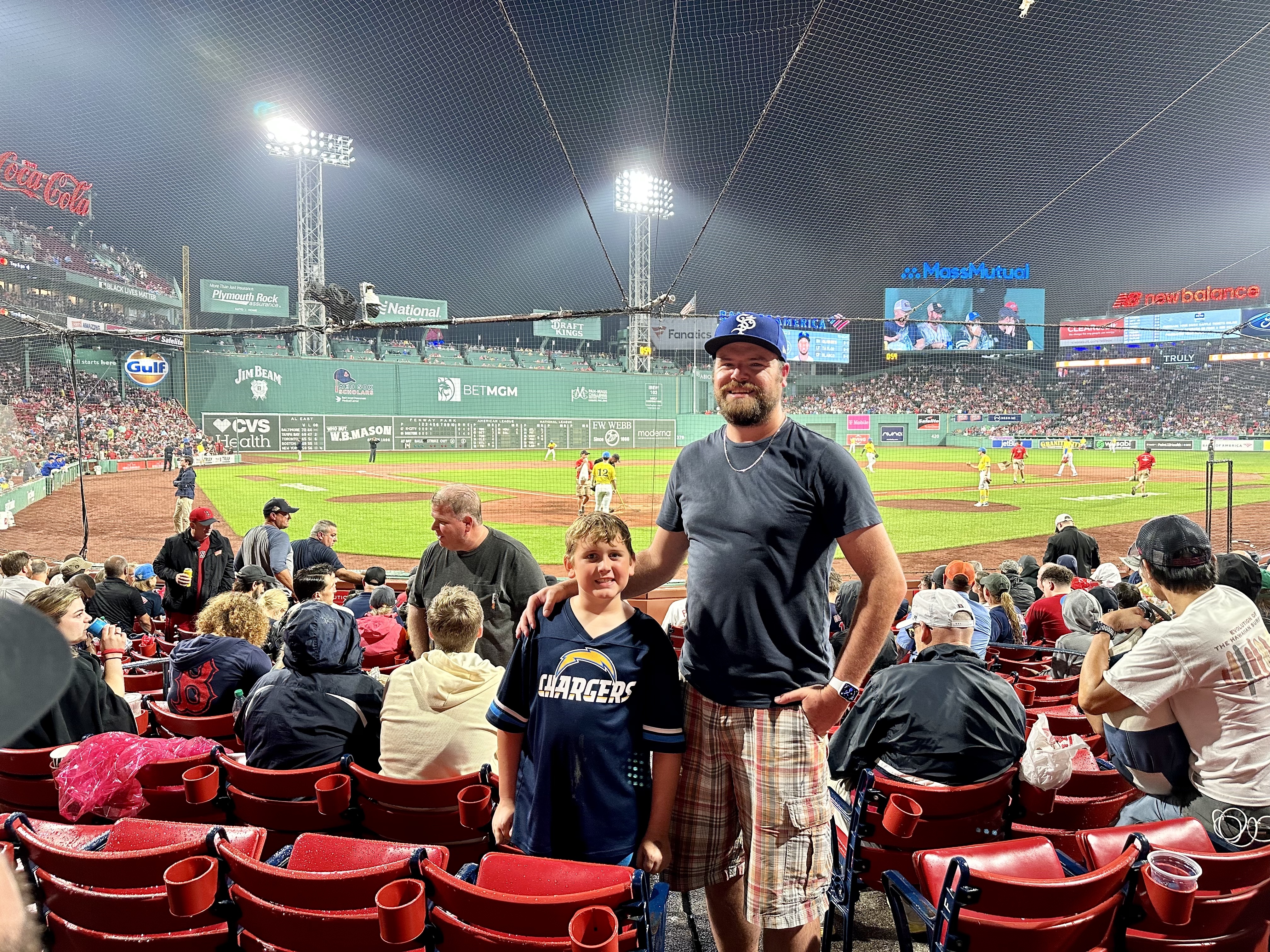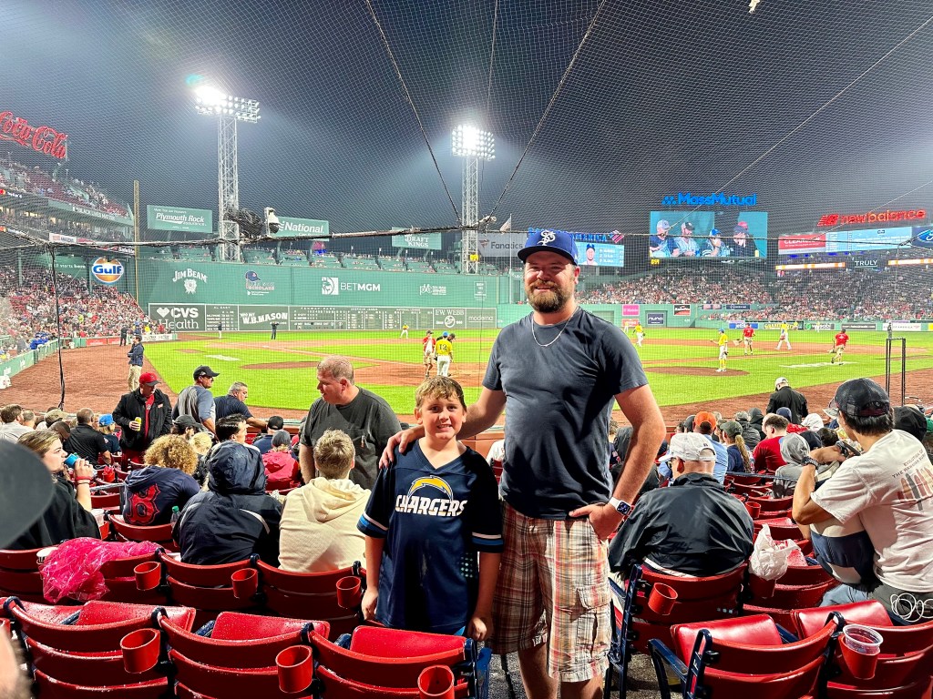 We went through southern Maine, the far southeast corner of New Hampshire, and on into Massachusetts all in about 90 minutes, stopping to pay tolls along the way. Our first stop was our final meal of the trip, a hearty lunch at a popular sandwich place called Flour. The harbor area was the next stop. I took some time to myself and went for a long walk around Boston while Lauren and the kids hung out at a fun little park called Martin’s Playground. The kids then had a blast at the Boston Children’s Museum for about 90 minutes. I’m not one for children’s museums, personally. Obviously I’m not the target audience here. I’ve just been to Austin’s Thinkery too many times and spent too much time pretending to eat plastic fruit that kids bring over in the pretend grocery store. We checked into our hotel at the airport around 4, the same one from before on the front end of the trip, while Lauren returned the rental car to Avis. Trip over, right? As John had confidently said earlier that morning, “Wrong!” We still had time to get to Fenway Park for a Red Sox game. Unfortunately, Boston traffic was at an all-time worst. No one was quite sure why, either. The Hilton shuttle driver swore he had never seen traffic at such a total standstill. We were planning to have the shuttle drop us at the airport and take the subway to the game, which all told should have taken at worst twenty minutes. Instead, we were stuck in traffic for forty minutes before bailing and getting out of the shuttle and trying to get to the station on foot. Thanks to Lauren, a Minneapolis native and former Toronto resident, navigating metro transit systems is second nature to her, unlike me with my rural South Dakota upbringing. She got us to a free bus that could drive right around all the shuttles and other traffic and took us straight to the subway, which we then easily navigated to the ballpark and still managed to be there for first pitch. Our seats were right inside Pesky’s Pole down the right field line, but we wouldn’t get to enjoy much of the game. The rains hit, and never really let up. Seeing how the Royals weren’t scheduled to play in Boston again for the rest of the year, the teams played through the rain, which got very heavy at times. Lauren and Edie wanted no part of it and headed for the concourse, which of course was jam-packed and loud. They both had had enough and wanted to leave in just the second inning. John and I wanted to stay. After much deliberation while eating a Fenway Frank and walking the concourse, John and I noticed how few people were actually in their seats, so we snagged some great seats right behind the plate and watched a couple innings from the tenth row. We agreed two innings of great seats was a fair trade and left the park with the gals, taking an Uber ride back to the hotel. It made sense to leave early anyway, given our 4:00 wakeup call.
