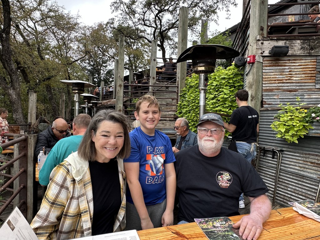 The kids’ baseball seasons wrapped up. We enjoyed a nice cooldown weather-wise, and even saw a decent amount of rain. Grandma Marcie and Grandpa Dick visited for a few days, hoping to see the kids play baseball, but after a rainout we instead toured Hill Country and rode on Texas’s only alpine coaster. I ran the Turkey Trot on Thanksgiving morning, and we celebrated the holiday with—who else?—the Plumpes, where dinner was followed by board games and drinks and culminated with the entire family sleeping over.