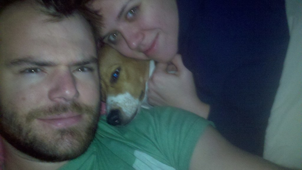 The night of Tuesday, January 16 was pretty normal. Lauren went off to bed and left me and Baxter on the couch around 10. I wound up staying up past midnight, a rarity these days, and once I realized the time, I scurried off to bed. As usual, in the middle of the night, Baxter traipsed up the stairs and arrived at my side of the bed, scratching to be hoisted into the bed. I obliged, grabbing whatever body parts of his I could find in my half-sleep, and hurled him into the middle of the bed and buried him deep under the covers. Also per usual, Edie at some point snuck into the bed, pushing me further to the edge. I awoke as usual, clinging to the teeniest scrap of mattress, with the beagle lying horizontally between me and Lauren, forming an H, and Edie lying diagonally with her feet in my face. All very normal.