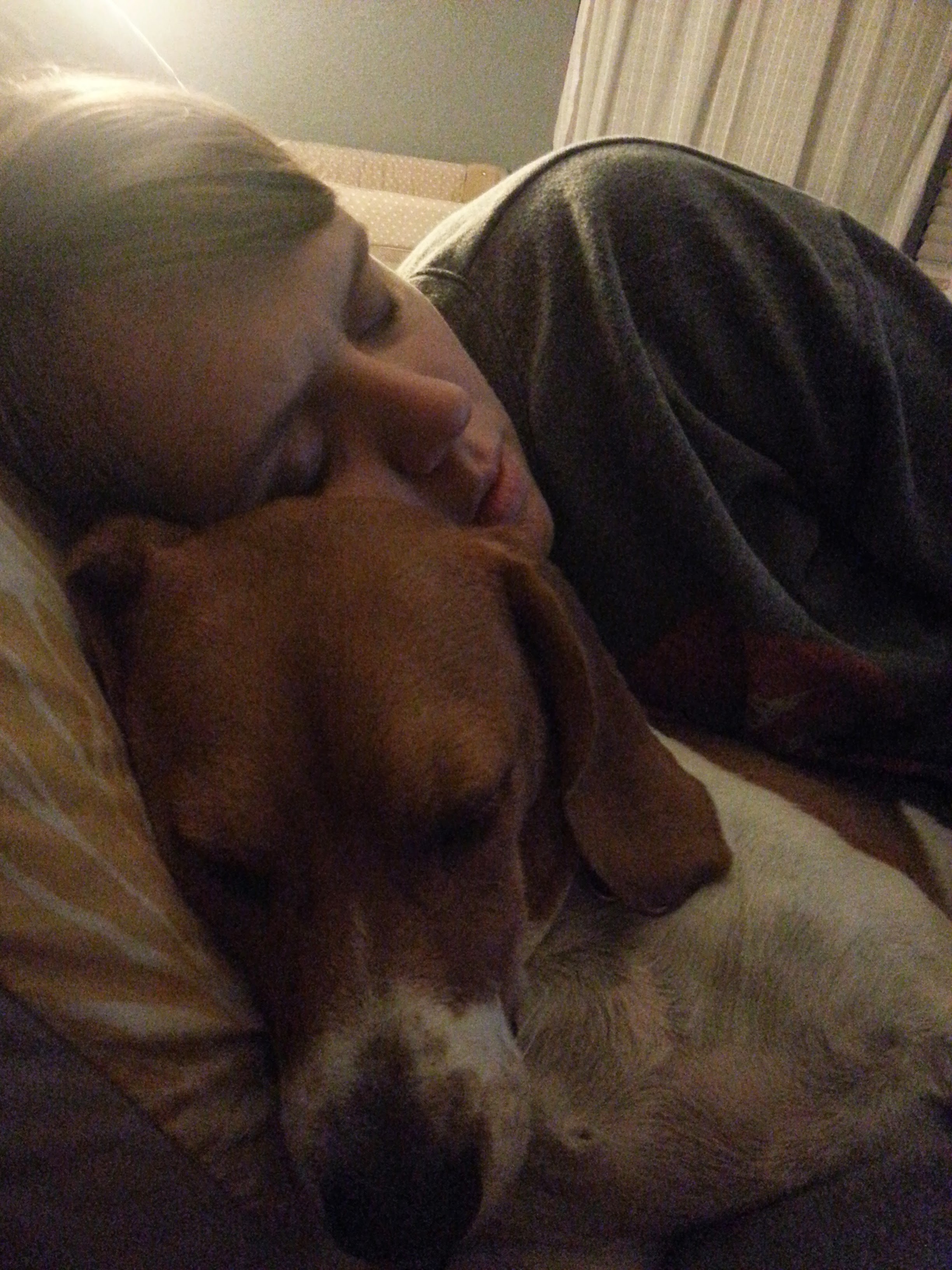 While Baxter chose me as his master (due to all the puppyhood table feedings, no doubt), Lauren cherished him the most. That dog was always found in a deep Lauren clutch under the blankets, as a living teddy bear of sorts. She is taking his death much, much harder than the rest of the family.