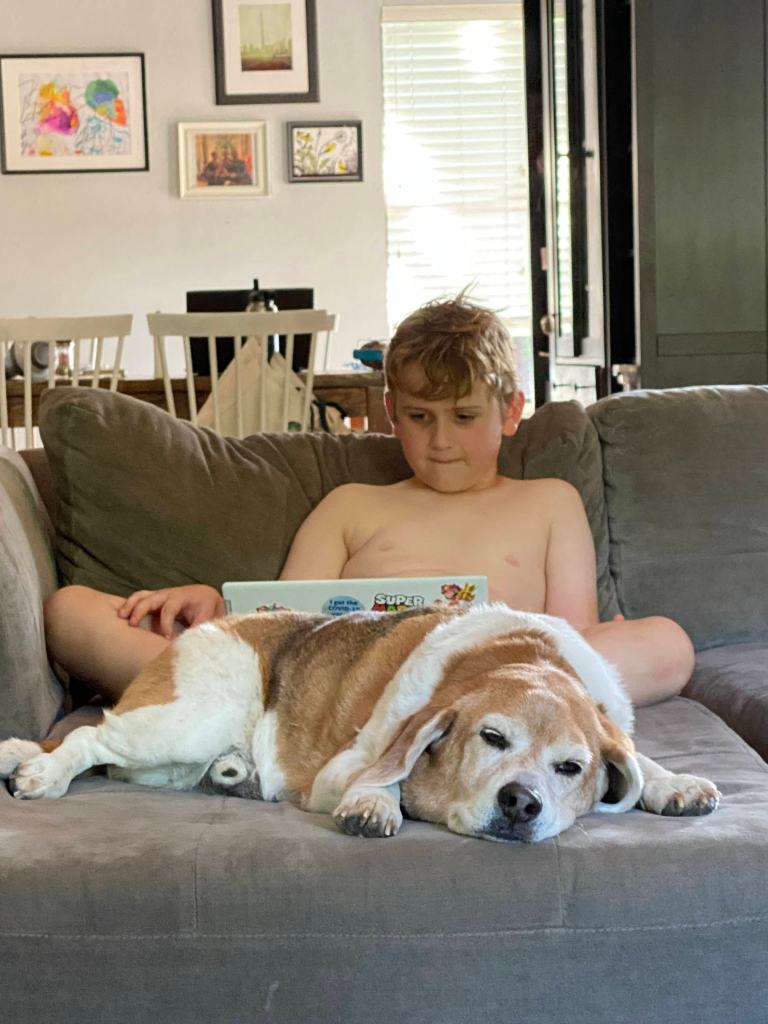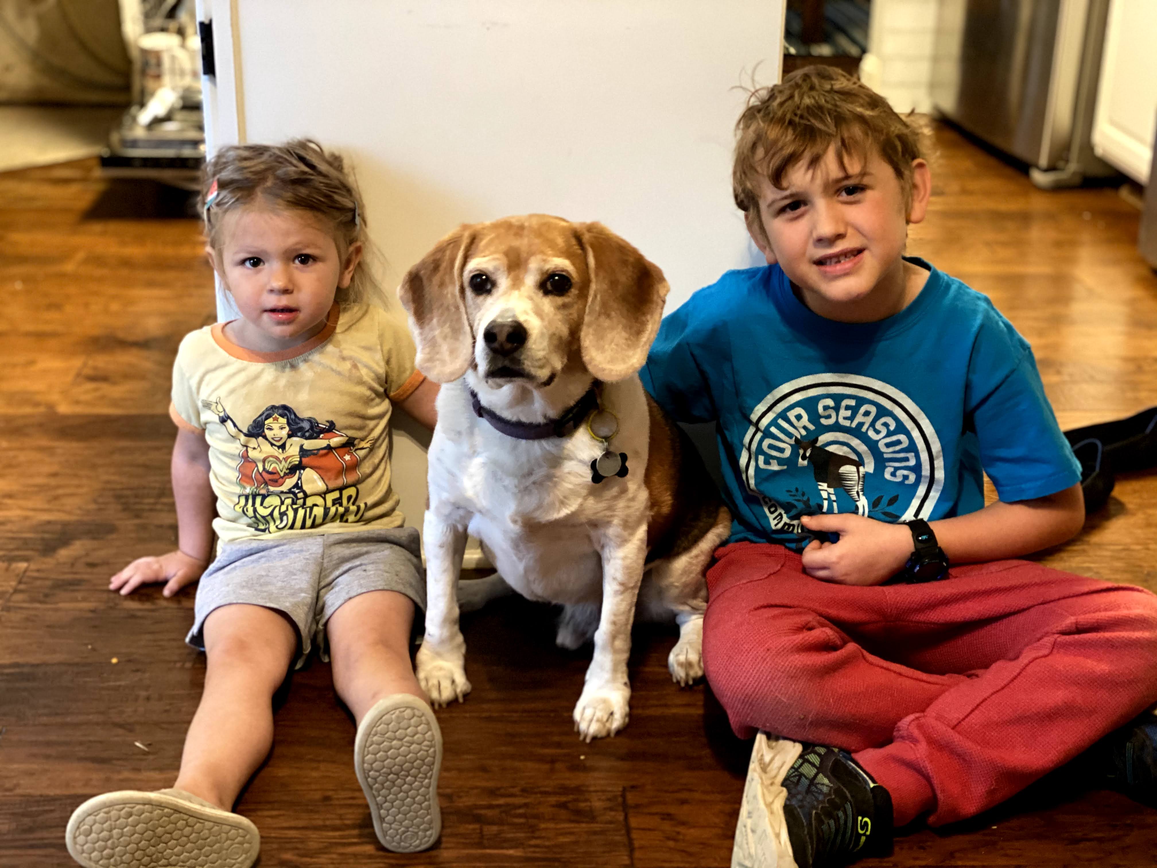 Knowing how close he was to crossing that rainbow bridge, I decided to take him back to his old dog park in downtown Austin, Norwood Estate, with the kids last Saturday. In his heyday, Baxter owned this park. Pre kids, Lauren and I would go down there on Saturday mornings with a coffee in hand and let him run his fool head off, nudging other dogs into chasing him, turning heads with his speed. That was 2011. In 2024, Baxter needed to be carried into the park, and when let off leash, he trudged and hobbled awkwardly and painfully across the grounds until he reached the other side, then spent the entirety of the visit sniffing the fence line. After that, we loaded him into a shopping cart and made a Home Depot run, another of his favorite haunts. Much like the mid-2010s, many shoppers turned to smile and chuckle at the sight of a beagle driving a kids shopping cart with steering wheel.