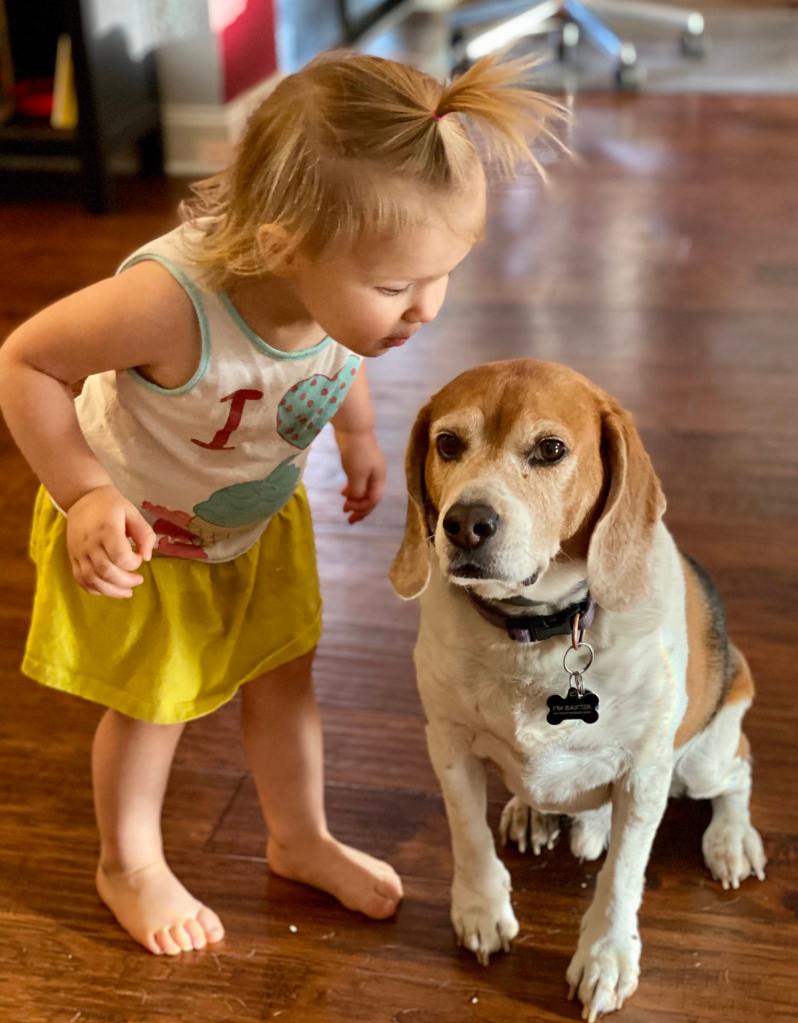 In his life, Baxter made many friends, both human and dog. Gizmo Plumpe and Oreo Mego were two of his closest dog friends in his senior years. Anytime anyone would visit, up until 2021, Baxter would leap frantically at them, so eager to make friends. Perhaps no friend was greater than our teenage human neighbor Angel, who would come knock on the door and ask to take Baxter for walks all the time. Baxter would perk up at the sight or sound of Angel, and she had the patience to do his agonizingly slow, meandering walks. Angel truly was a saint. She even house-sat for us when we went on big road trips to take care of the dog. She moved away a couple of years ago, but when she came back to visit her grandpa, she stopped in to see old senior Baxter, and he sure hadn’t forgotten her as he’d spring back to life, tail a waggin’. They were the perfect pair.