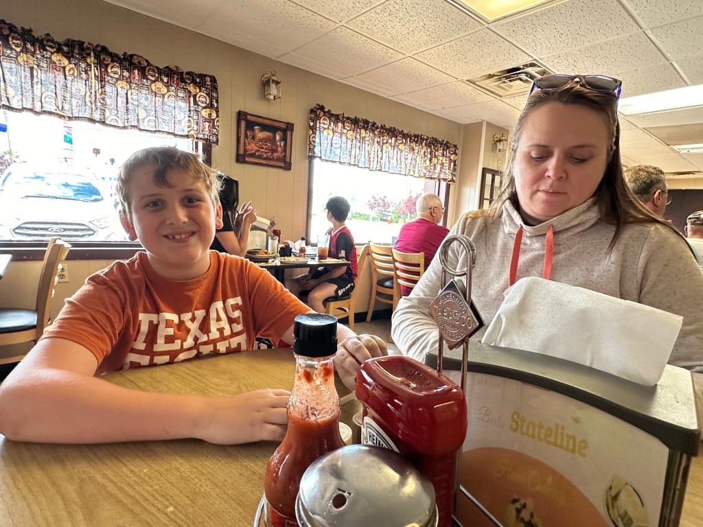 At Barb’s Stateline Cafe—a virtual replica of the Carpenter Cafe—Edie began having a big coughing fit until she puked right at the table. Leading up to the trip, Edie was very sick. She missed preschool all week with a fever and stomachache. But on the morning of the trip she woke up and proclaimed she felt amazing! Even when she had been sick, it wasn’t coughing like this. It’s like something changed the minute she got off the plane and she came down with a different unrelated illness. Next we continued westward to Steubenville, Ohio, so John and Edie could check Ohio off their lists. Good friend Bart argued that doesn’t count in his book, but hey, the kids touched foot on Ohio soil.