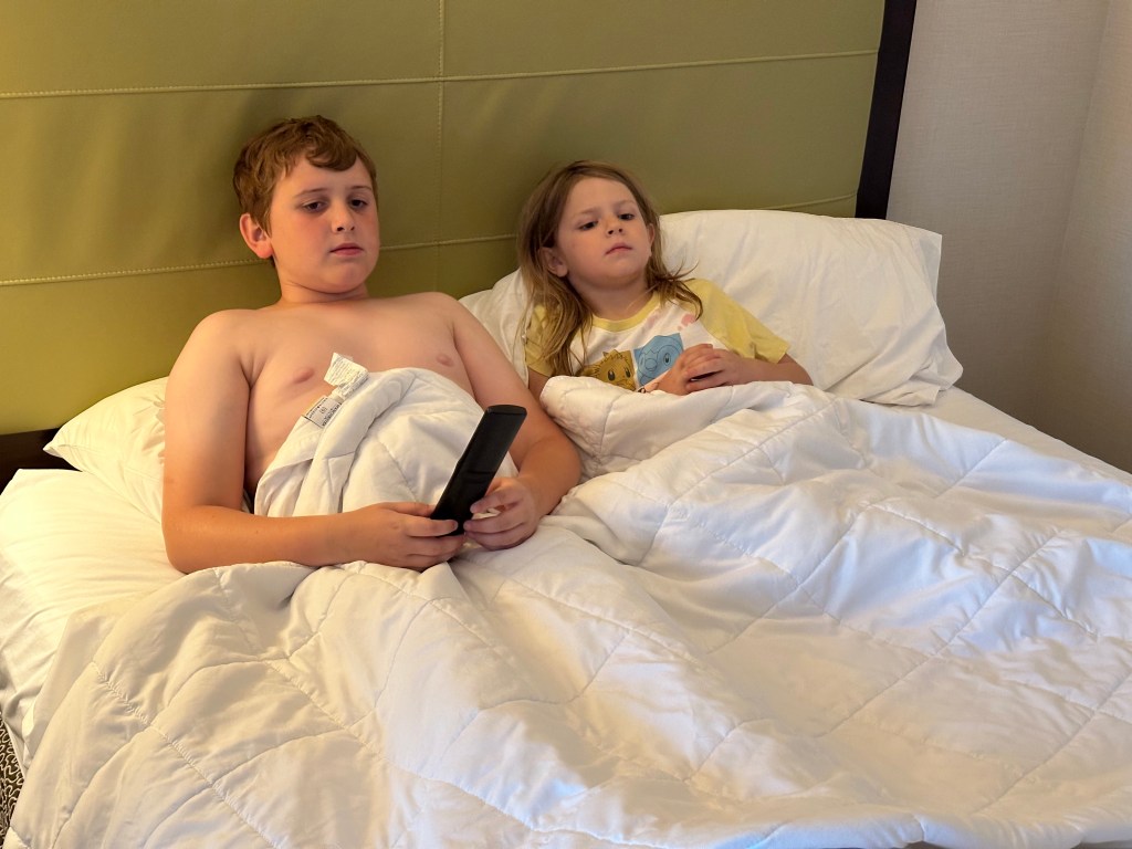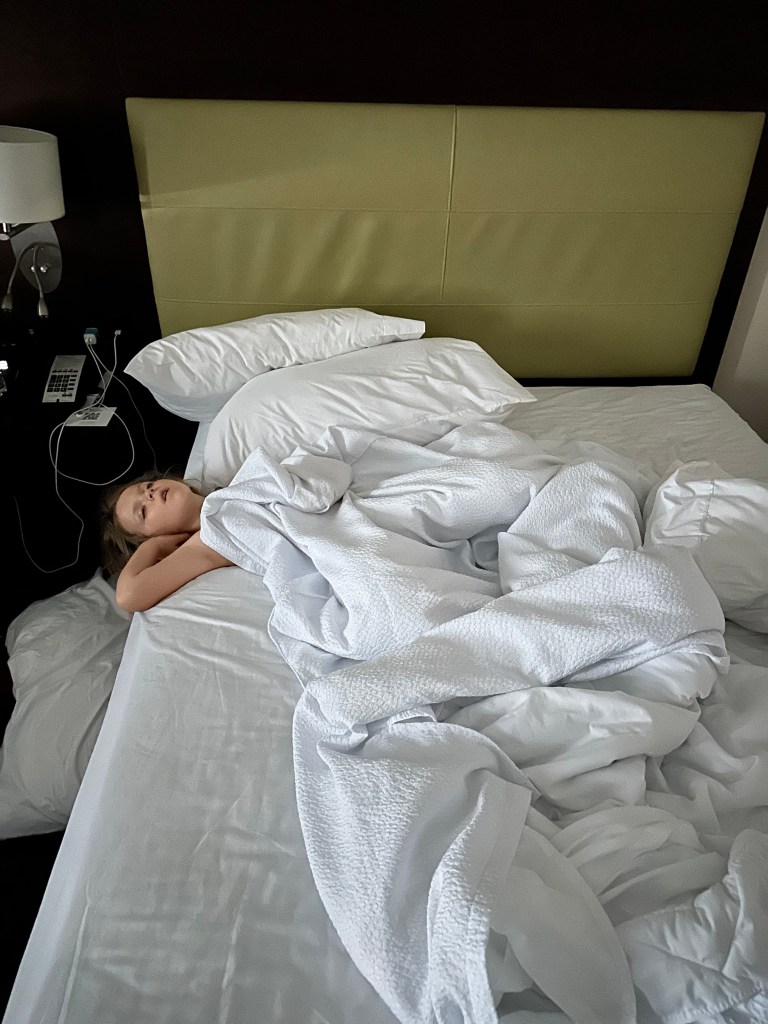 Lauren had to fly separately from us, leaving us at the hotel for Houston for a work thing. The kids and I had a pretty luxurious flight time of 11:14, meaning we didn’t have to wake up early and rush out the door. Our Allegiant flight was very bumpy back to Austin, and towards the end, Edie puked all over me and herself. It was a doozy of a mess to clean up in-flight while bopping around in turbulence. But, we made it home. Edie missed preschool Tuesday too, but finally went back to Four Seasons Wednesday after missing all of parts of seven straight days. Phew!