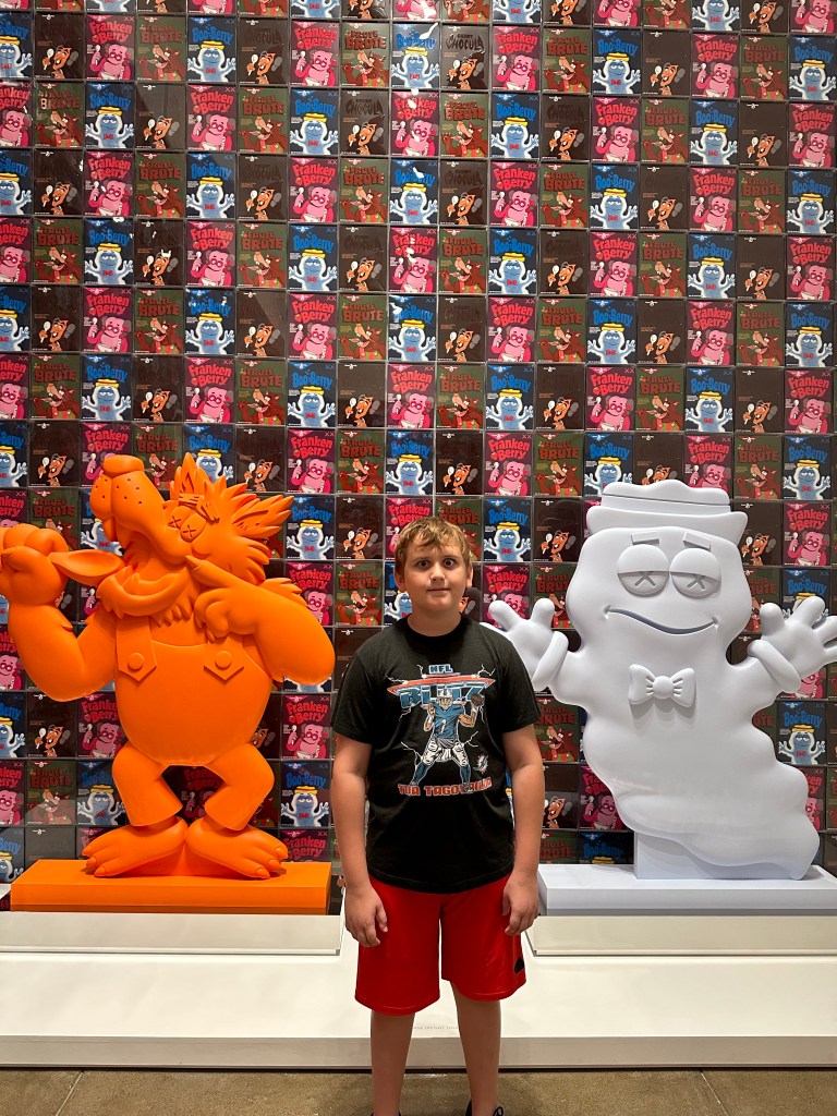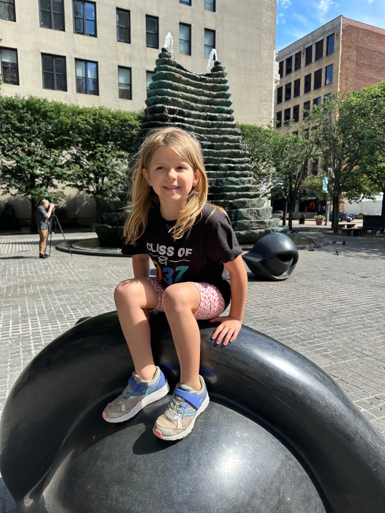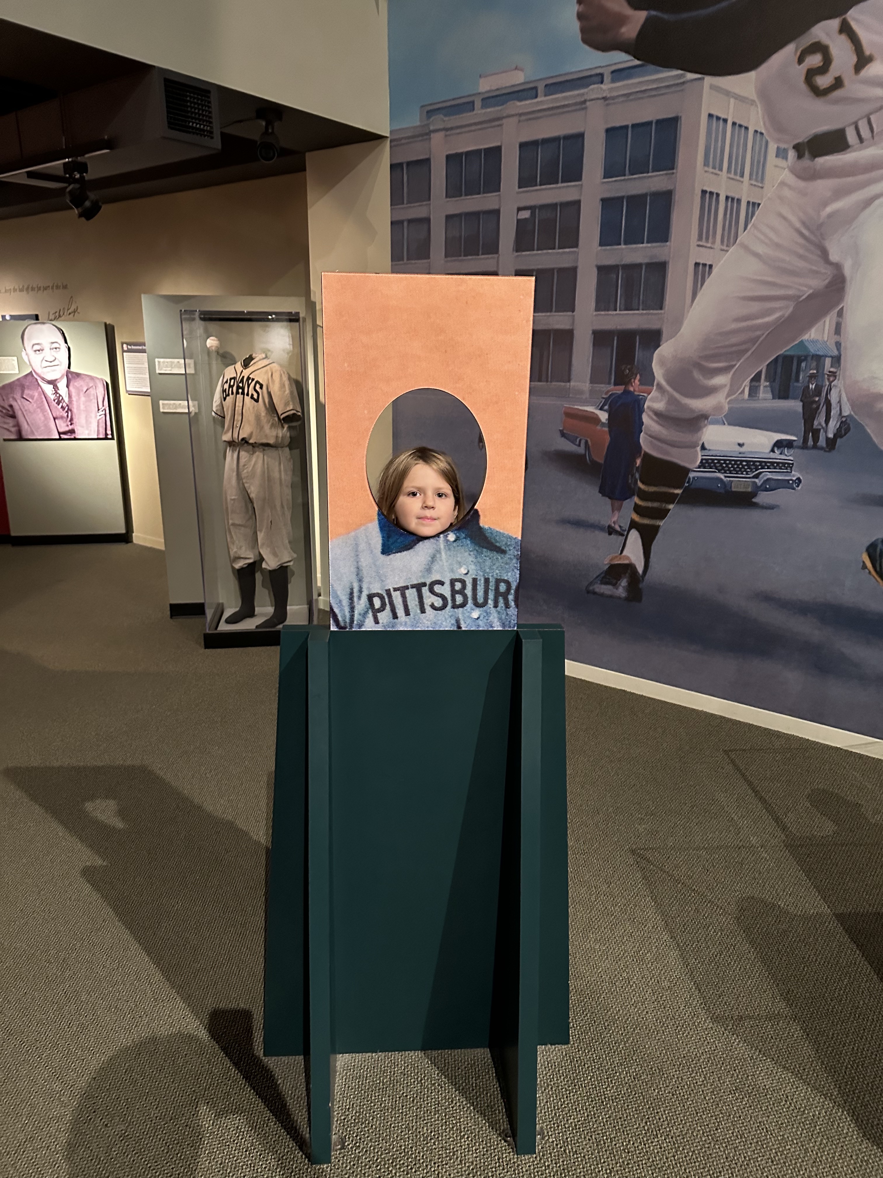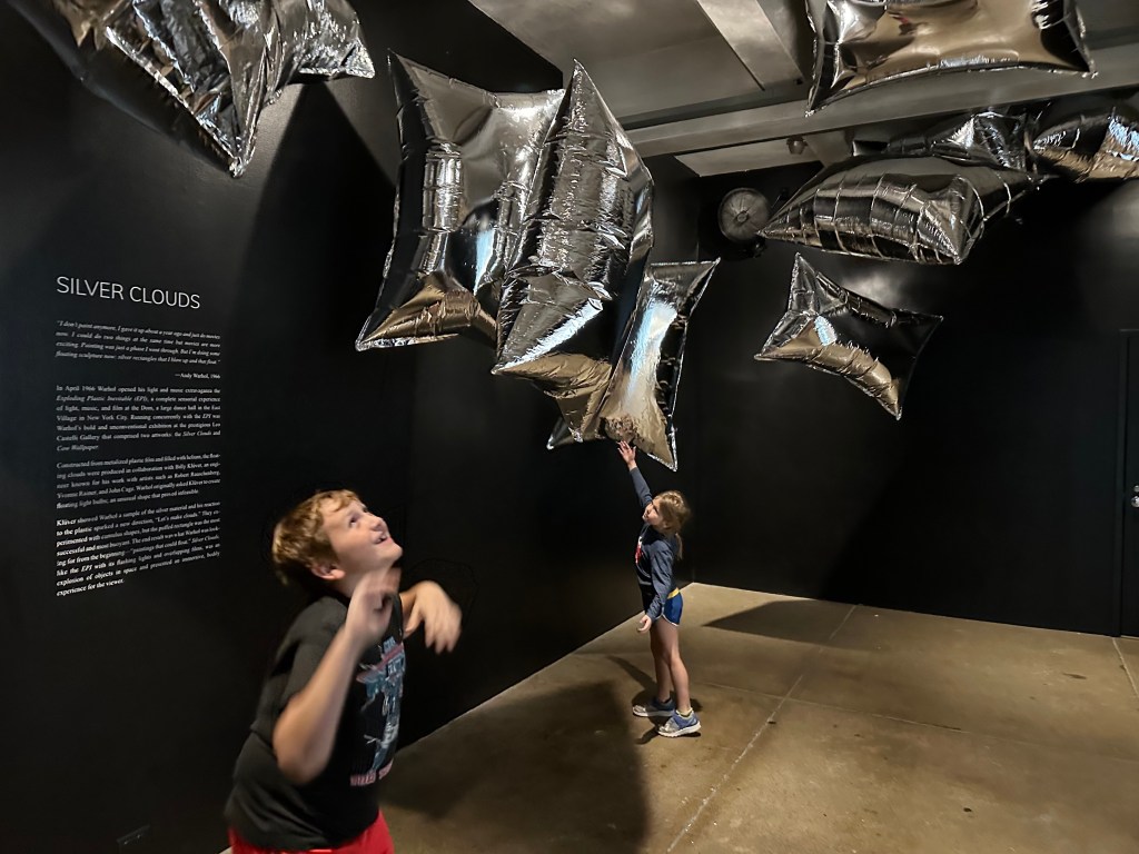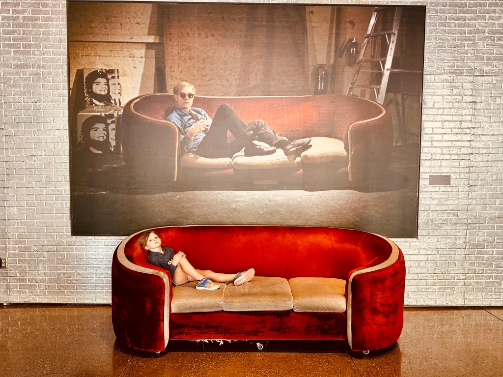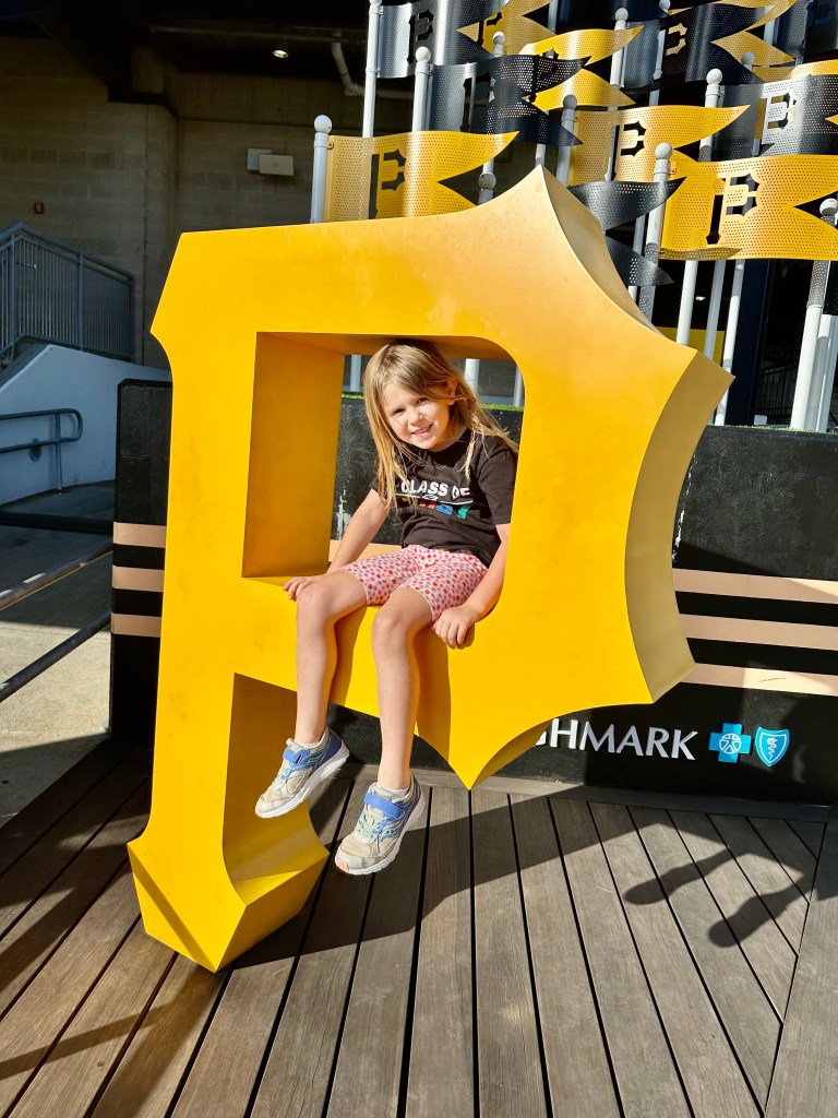 The next morning we ate at a local bakery and then walked over to the Andy Warhol museum. Warhol was apparently a Pittsburgh native. This was another 7-story museum which didn’t much interest the kids, but the grown-ups thought it was interesting. One of the weird art pieces he did was these really long “screen tests” where a subject just looked at the camera for like 45 minutes. They had a room set up where you could do a screen test, so naturally I partook. Literally one second before we were ready to leave and head over to the Sunday Pirates game, a door opened and a man popped out and invited Edie in to do her own art creations. John and I were anxious to get over to the ballpark, so we rushed them out of there.