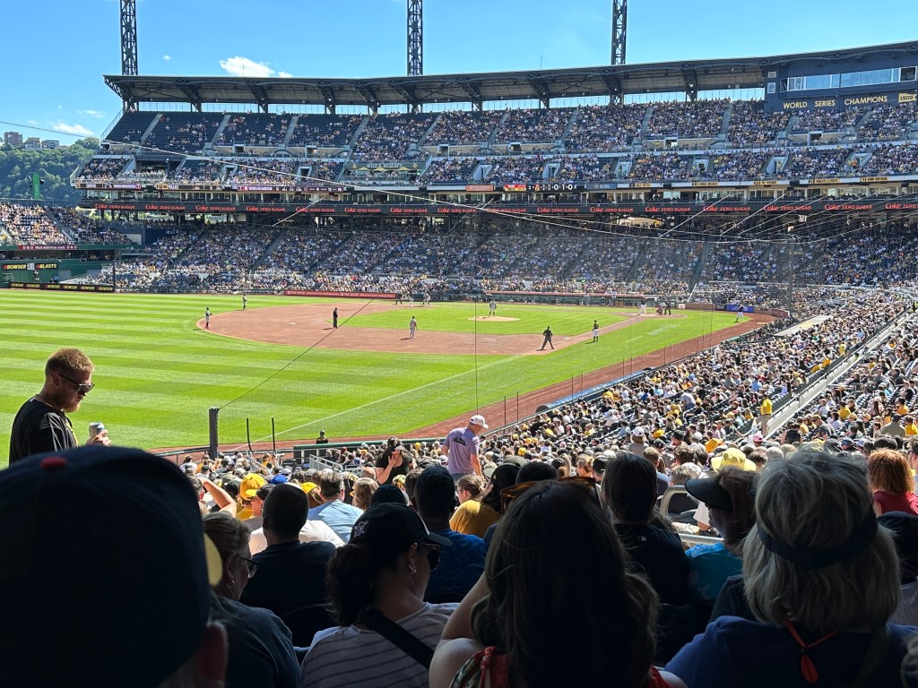 With PNC Park, I crossed off my 24th Major League stadium and 20th current stadium, having also visited the defunct Yankee Stadium, Metrodome, RFK, and the Ballpark in Arlington. I hate to try to rank them all because even the crappiest stadiums are still some of my favorite places to be, but PNC with its great views of the bridges and city is very near the top of the list. I am probably biased towards the Twins but I really do think Target Field is very underrated and might still be my #1. It was John’s 11th stadium and Edie’s 4th. I can’t speak for Lauren since I didn’t know her my entire life.