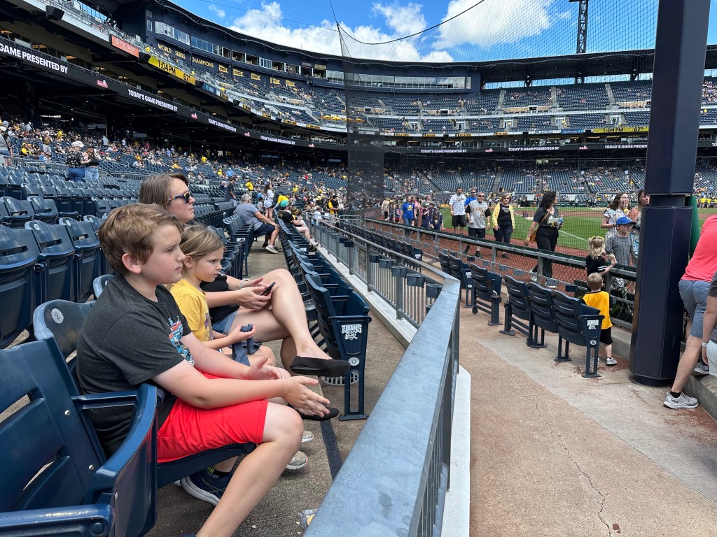 Our Sunday at the ballpark was much more enjoyable than Saturday. Edie was well-rested, we had MUCH better seats, the kids made it on the big screen, and the Twins finally started hitting. For just $10 more per seat than the day before, we were in the very front row behind the first base netting. It was a gorgeous Sunday afternoon with cooler than normal temps for Pittsburgh in June. The Twins forced extra innings and scored 7 in the 10th to win 11-5. We found some good pub fare for dinner, and called it a night.