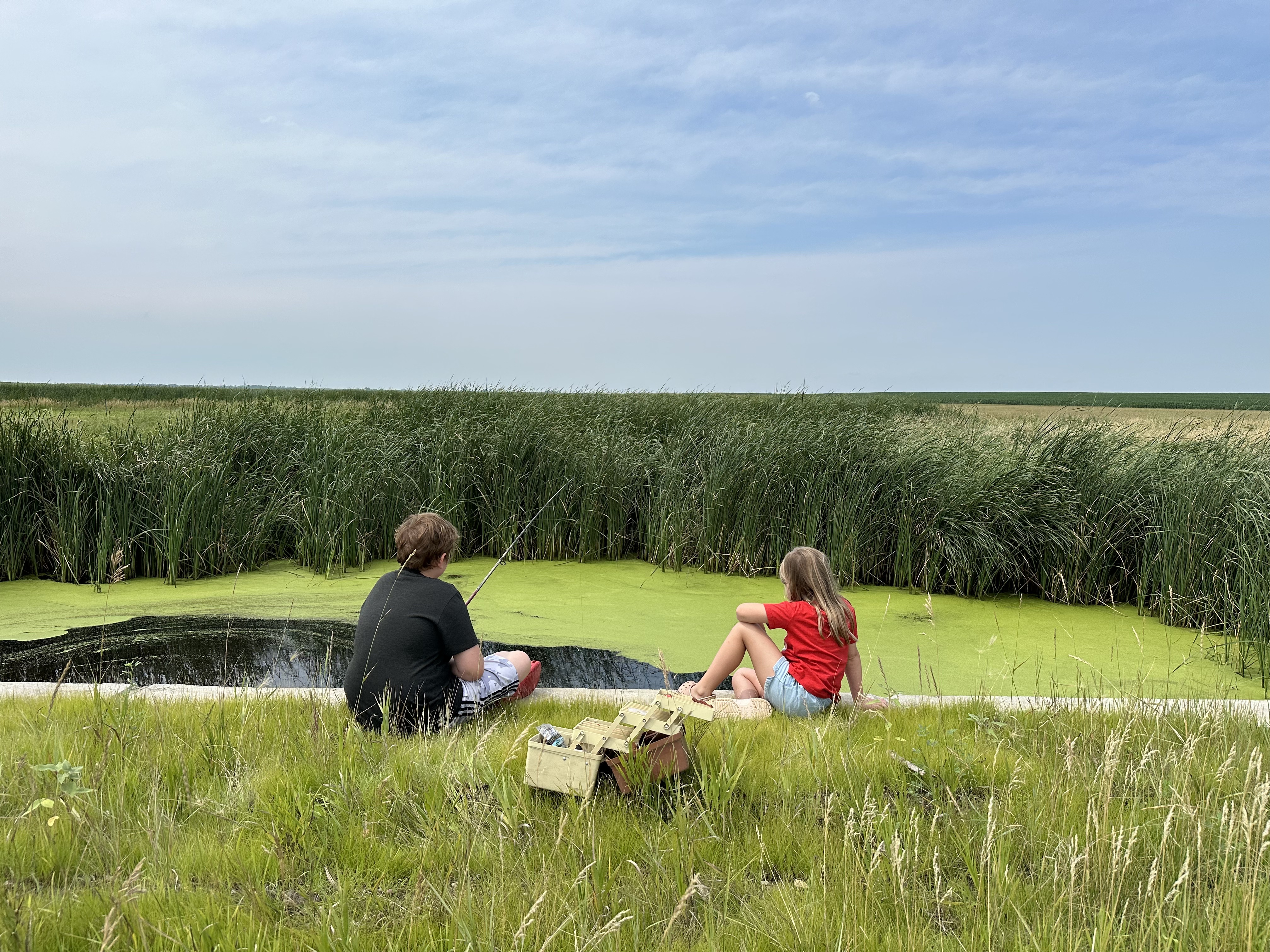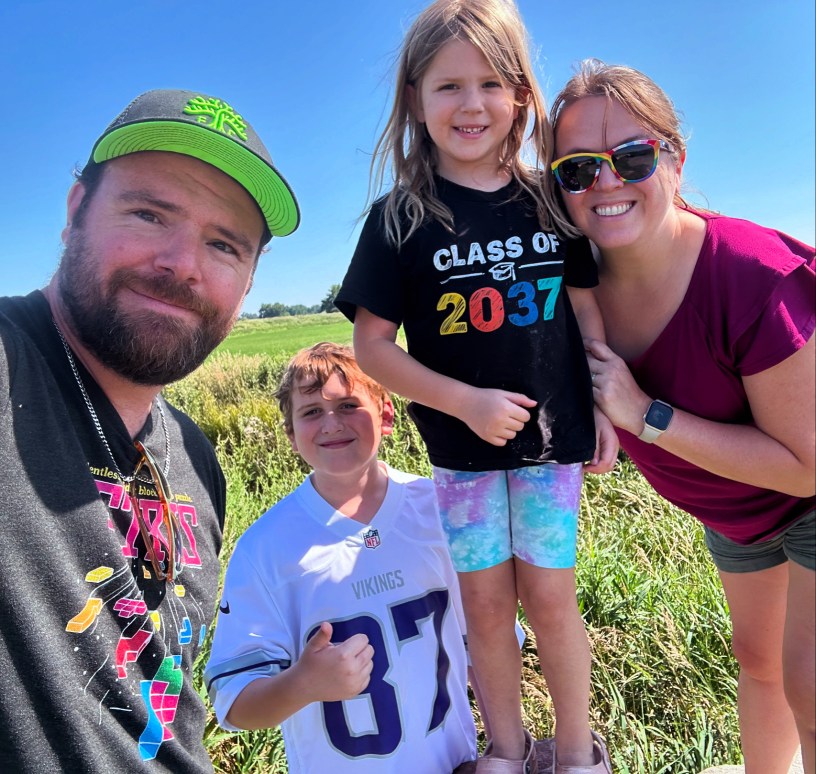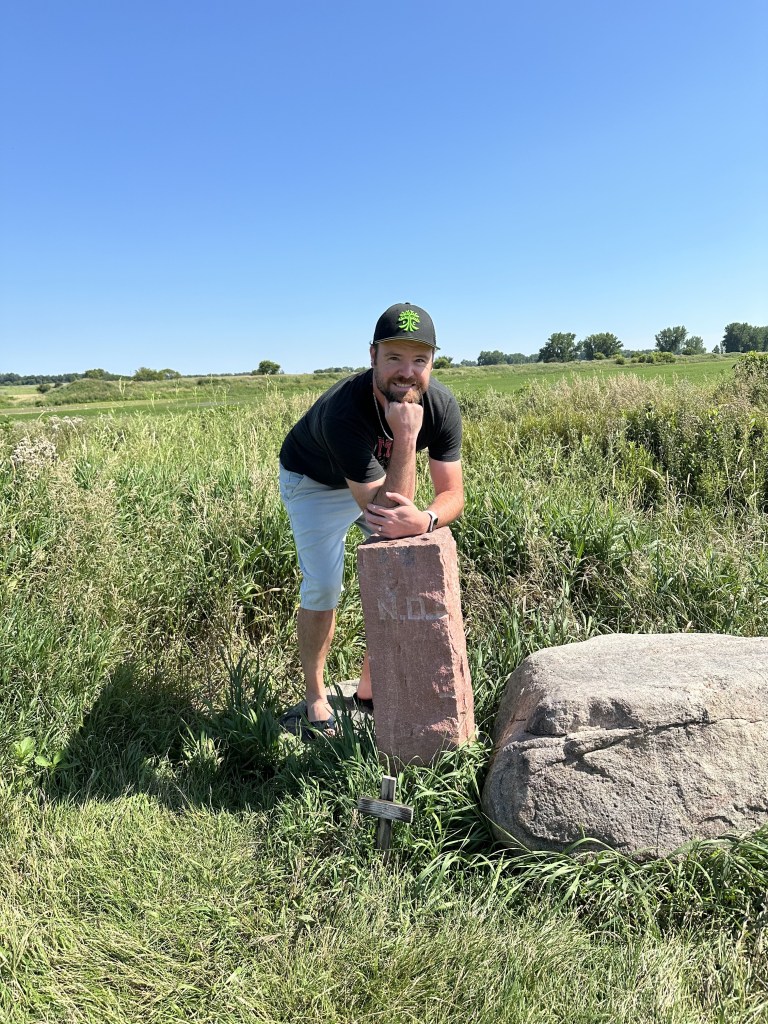 After breakfast and swimming with Matt, Calla and family in the morning, we departed for the Glanzer farm. Normally we’d just take a direct route on 212, but we decided to take a scenic route northwest to avoid some road closures and let the kids say they had been to North Dakota. Unlike the first tri-state border experience, this one was NOT on the beaten path. I drove the van down a grass road with tire ruts to find the obelisk representing the SD/ND/MN tri-point. It was kinda fun hunting for something off the map. While the kids got no more than 2 or 3 feet into the absolute southeastern corner of ND, they can still claim it! We eventually arrived on the farm and settled in for the week.