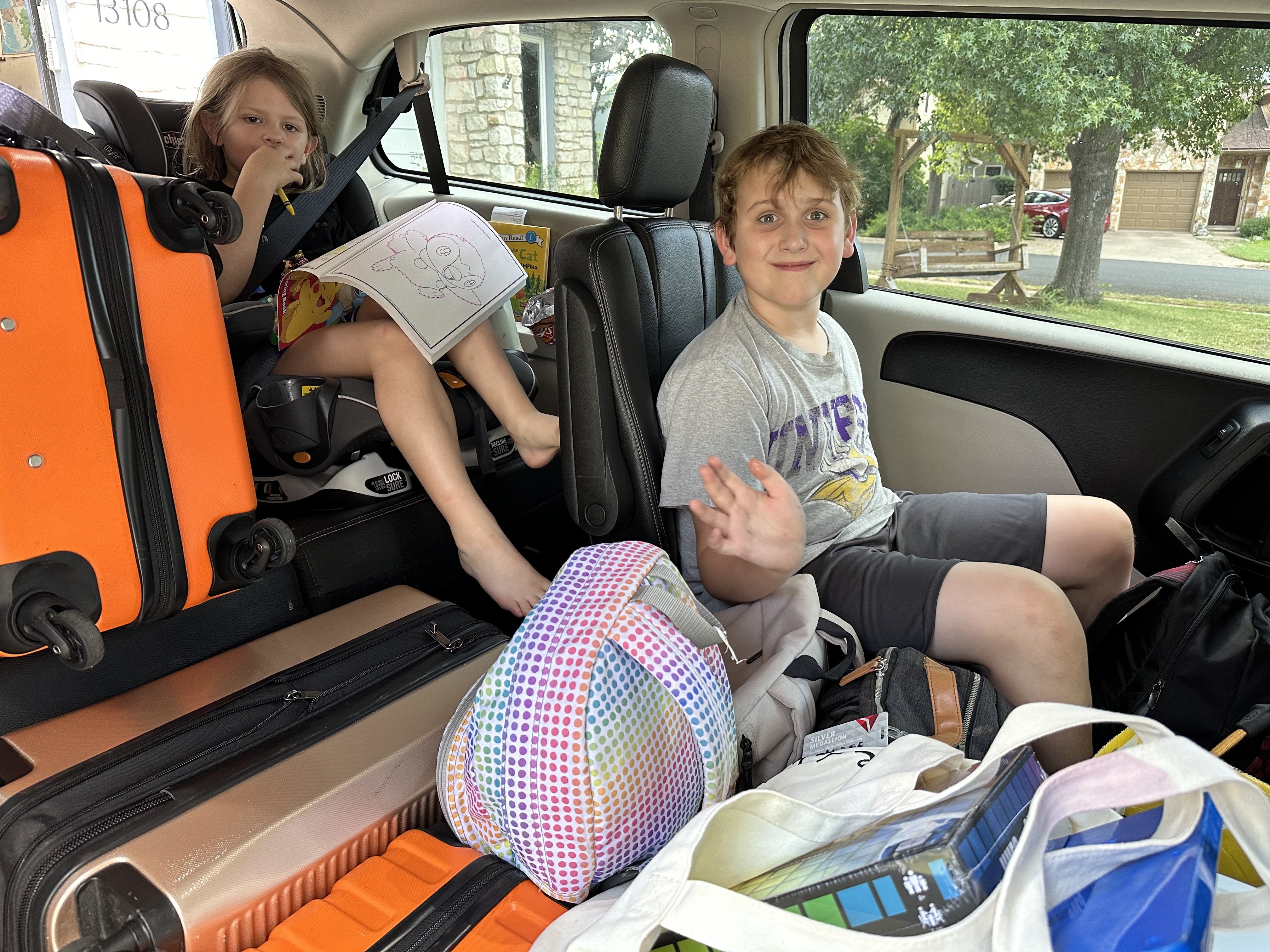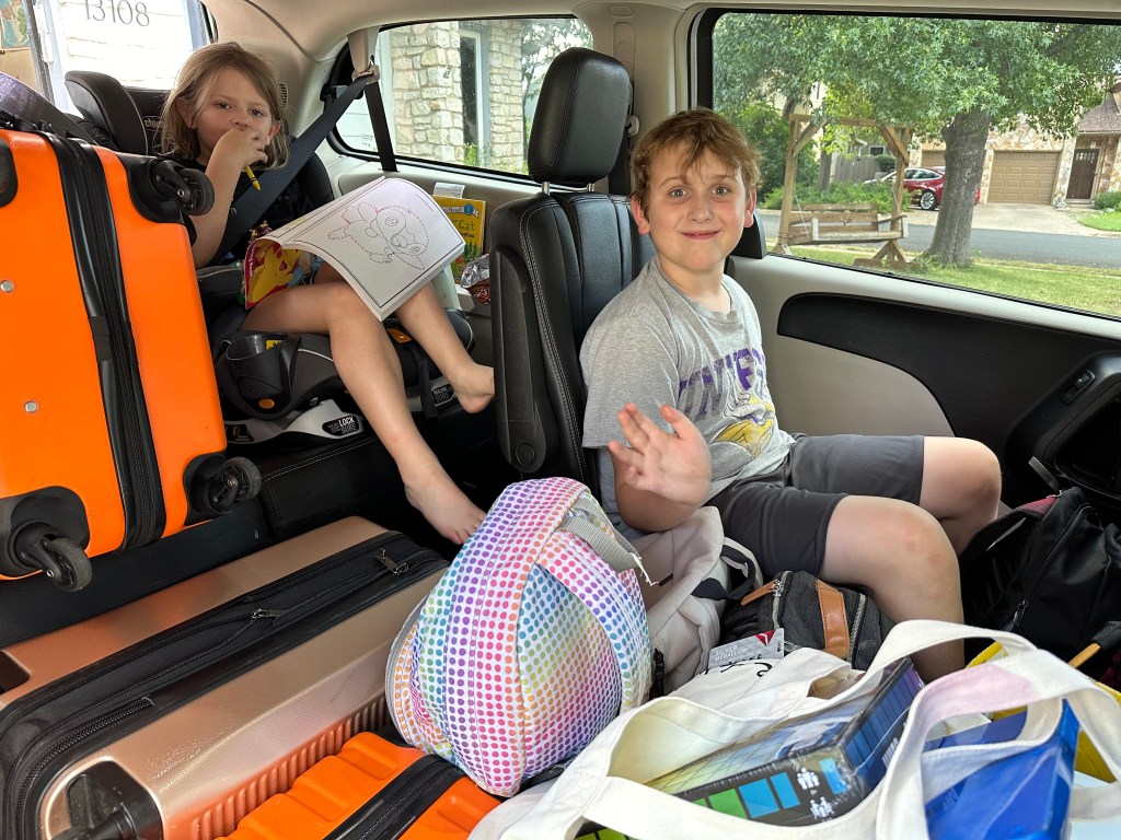 It was a normal work day for me and Lauren, while Edie went to gymnastics camp as usual. John was given three days off of camps to see if he could entertain himself. At 5:00, we quit work for the day and started loading up the van, and an hour later we were on the road as far north as we could dare go in one night. We stopped for dinner in Waco, otherwise it was mostly pedal to the metal through Fort Worth and into Oklahoma. At 12:30am, we stopped at the next city of any significance, which happened to be Paul’s Valley, OK. After a night of solid sack time, it was right back on the road.