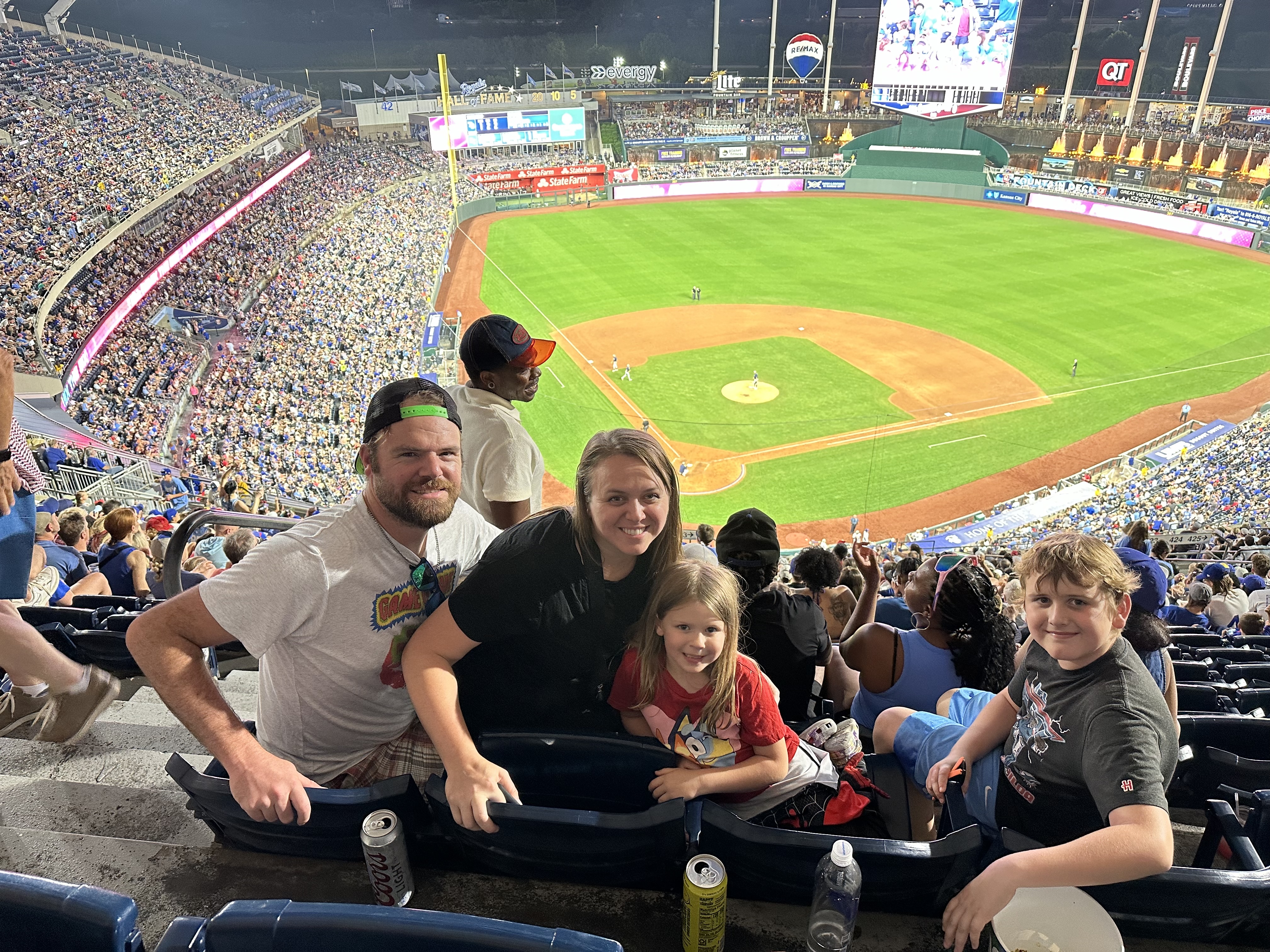 By mid-afternoon we arrived to Kansas City, where we checked into a hotel across from Kaufman Stadium for that night’s Royals-Rays game. Our seats weren’t great for baseball, but they were for the big 4th of July fireworks show after the game! I had been to Kaufman quite a few times before, and Lauren had been once, but for the kids it was a new stadium to check off the list.