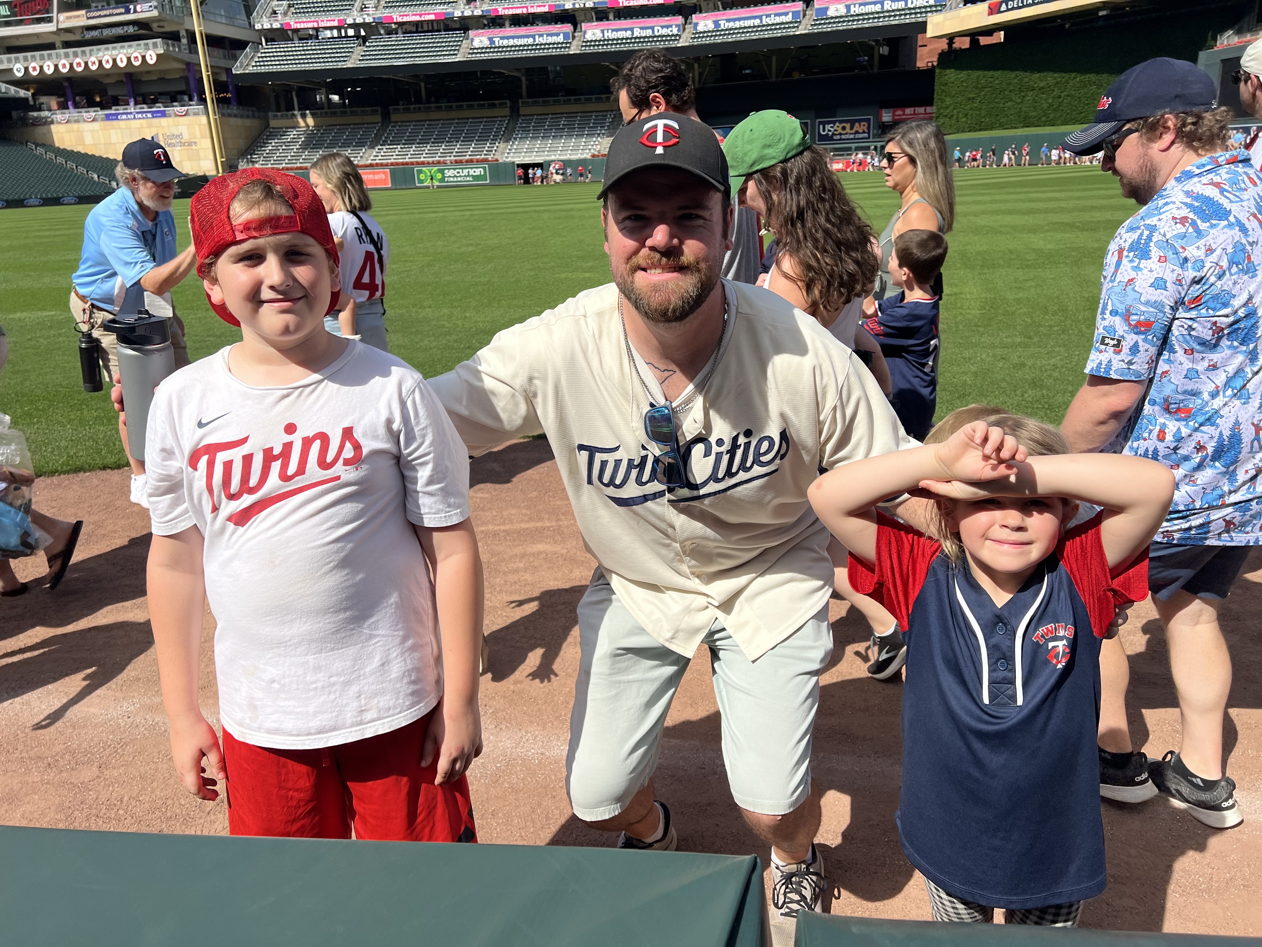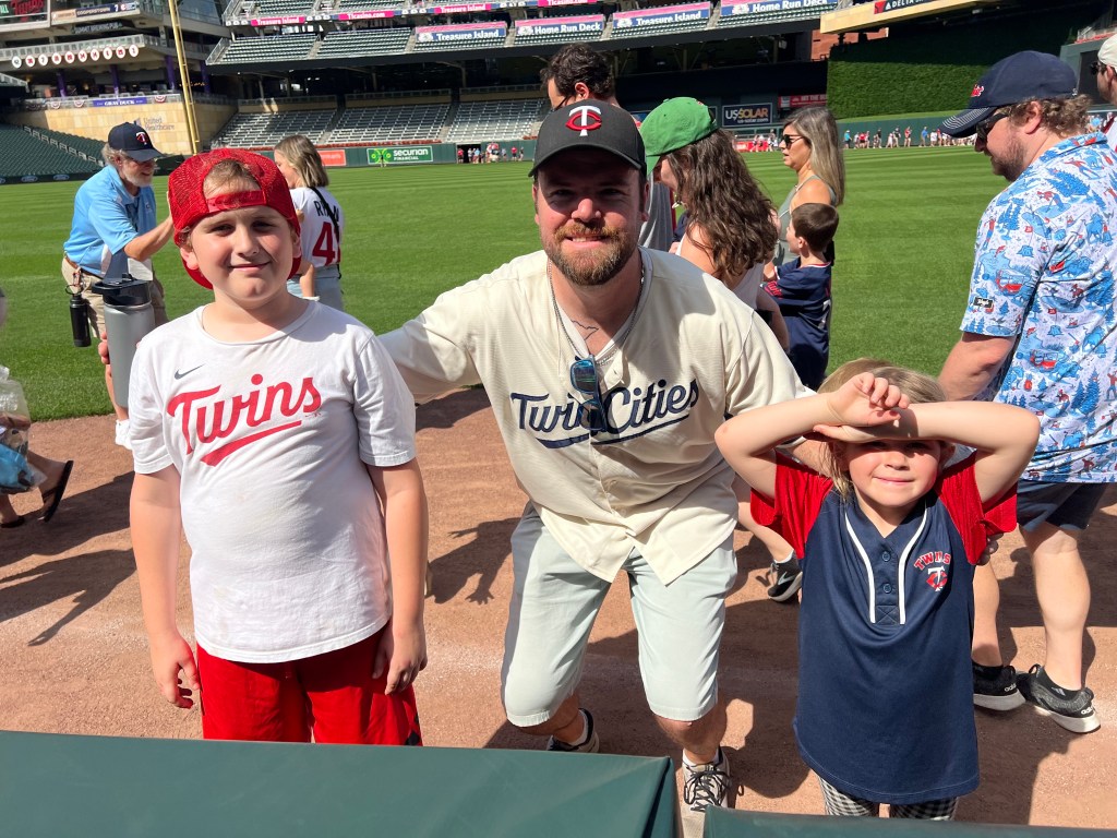 The day centered around a visit to Target Field to see the Twins play the Astros on a sunny Sunday afternoon. Our whole family plus 4/5 of the Rosoks went together and caught a whale of a game. Twins light-hitting backup catcher Christian Vazquez drove in all 3 Twins runs from the 9-spot in the order, including a walk-off home run vs Josh Hader in a 3-2 victory. After the game, the kids and I went down on the field and ran the bases—probably more of a thrill for me than them!