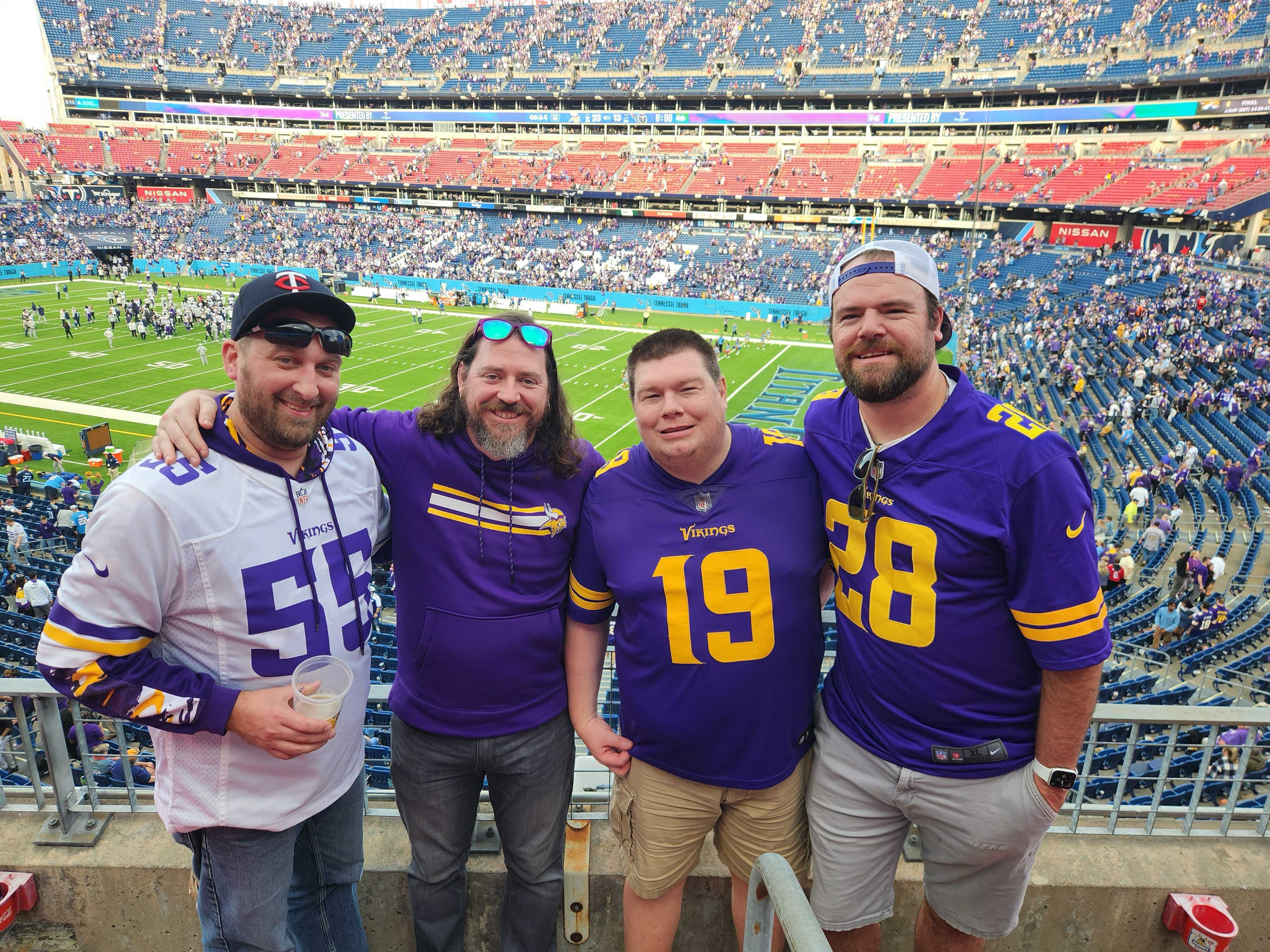Walsh, Luke, Nick and myself cheered on the Vikings to victory in a very Viking-heavy crowd!