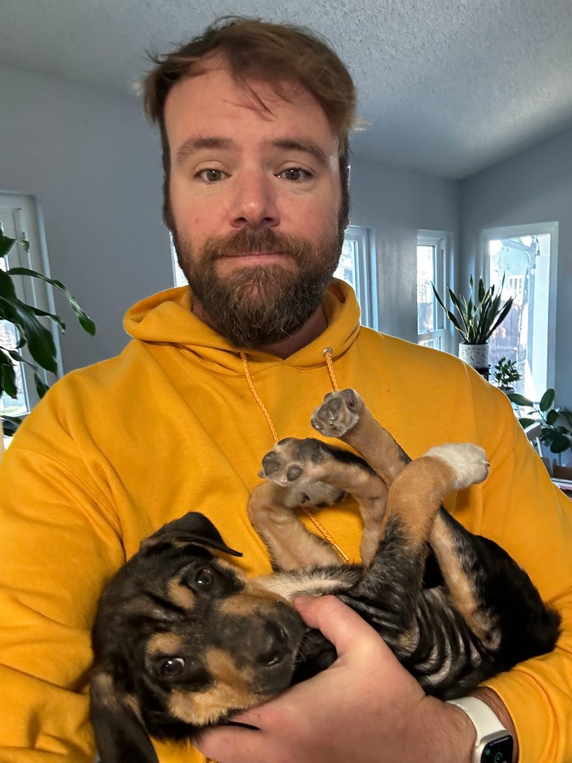 Let me tell you, there was nothing more satisfying than seeing that pup wolf down a bowl of dog food. After all, Baxter didn’t touch any food intended for animals the last five years of his life. She was supposed to be crated at night but after four sleepless nights of howling, she landed in our bed burrowed deep under the blankets. The thing I’m struggling with most though is that “beagle” rhymed with a lot of stuff and was good for songs. We don’t even know Minnie’s breed, and surprisingly Minnie doesn’t rhyme with as much as you’d think. She sees the kids as kids like her, and it’s all play all the time with those two. And she sees the adults as the masters, knowing that’s where her food comes from. We’ve all taken to her very quickly!