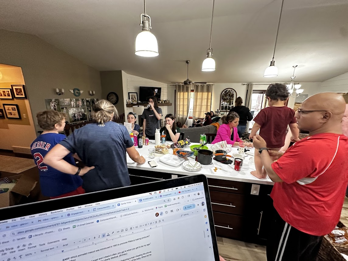 After a day of work, we cooked up dinner and split the family into teams for the first annual round of Glanzer Trivia! I moderated the event, reading several questions from a category of each participants’ choosing, ranging wildly from farming to baseball to the show Steven Universe. Alex, Emmy and Adrienne’s team came out on top.
