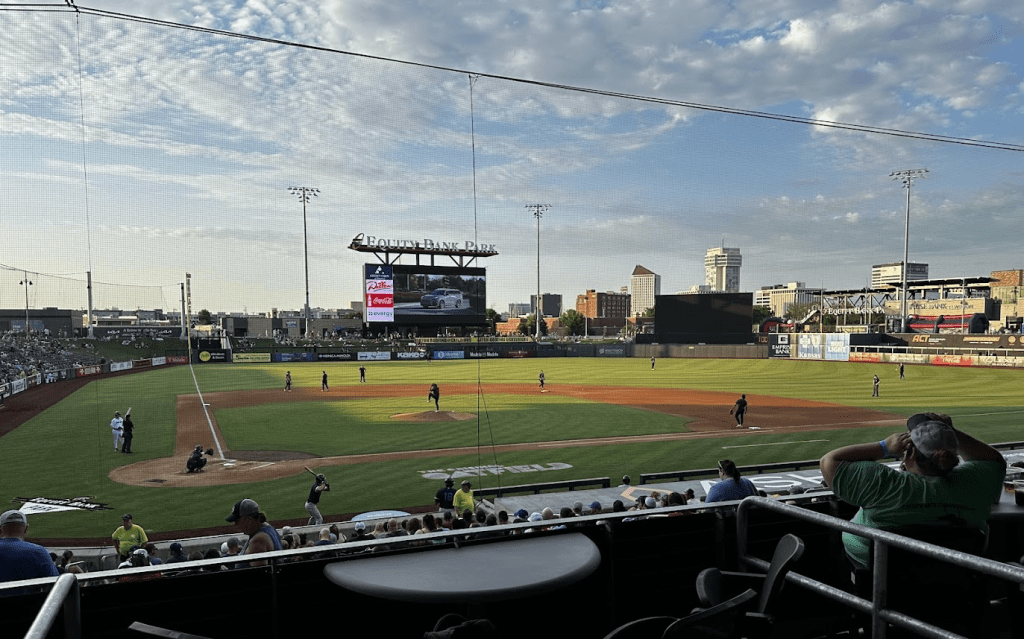 No, Wichita is not really on the direct path from Tulsa to Carpenter, but I had long wanted to see a Wichita Wind Surge (Twins’ AA affiliate) minor league baseball game. I left the Tulsa office around 1 that day and checked into my Home2Suites hotel, right across the street from the ballpark. I had time to kill, and was pooped from driving, so I closed the blackout curtains, mixed a drink, and spaced out to The Office for a couple hours. It felt very relaxing to do such a thing in the middle of a weekday. In the evening I ventured over to the ballpark and watched most of the Wind Surge’s game vs. the Corpus Christi Hooks.